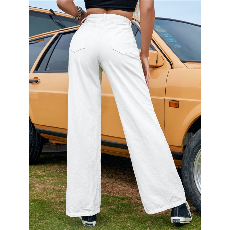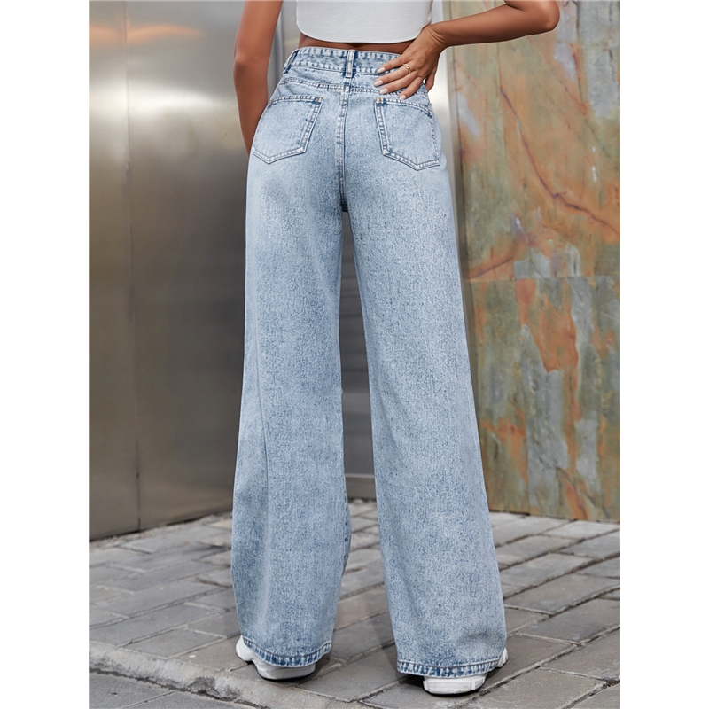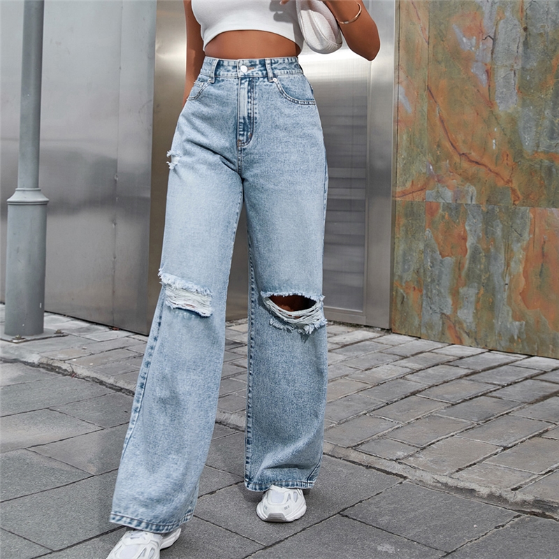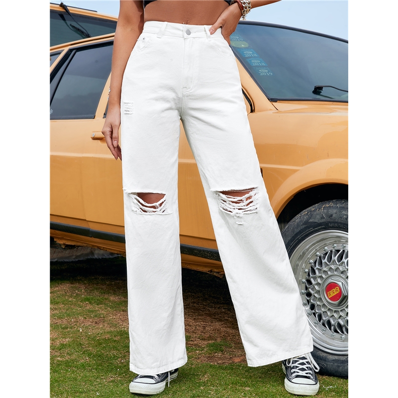 Ripped High Waist Wide Leg Casual Jeans Pant