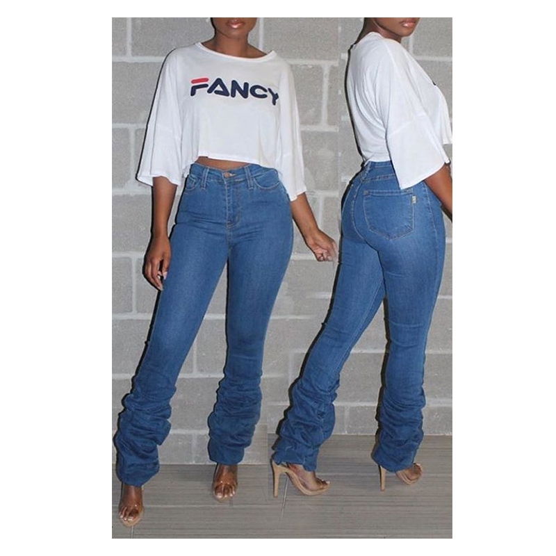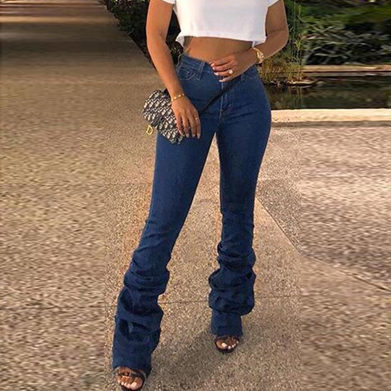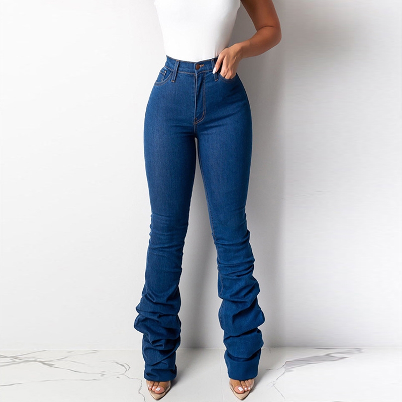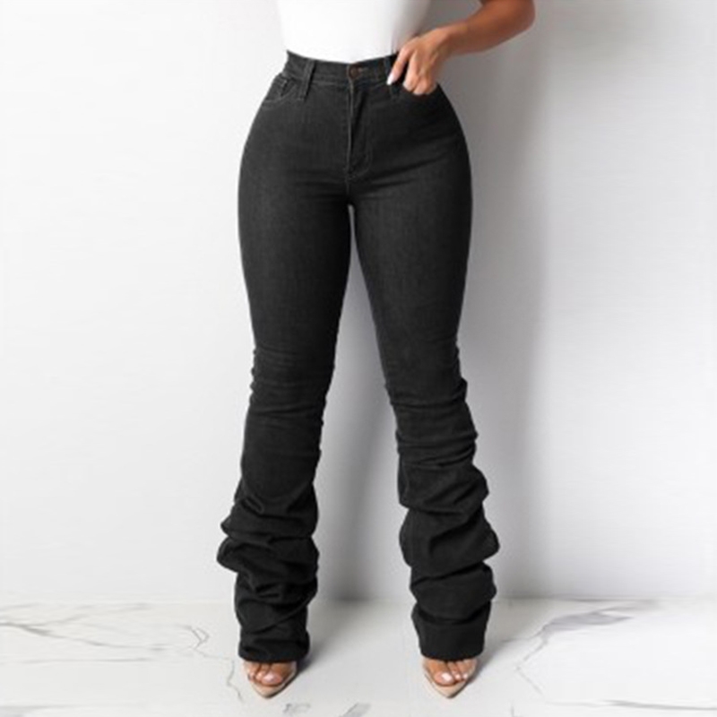 Solid Color Pleated Mid-Waist Straight-Leg Jeans