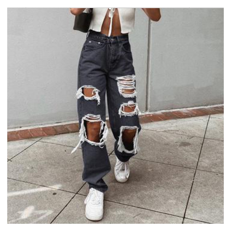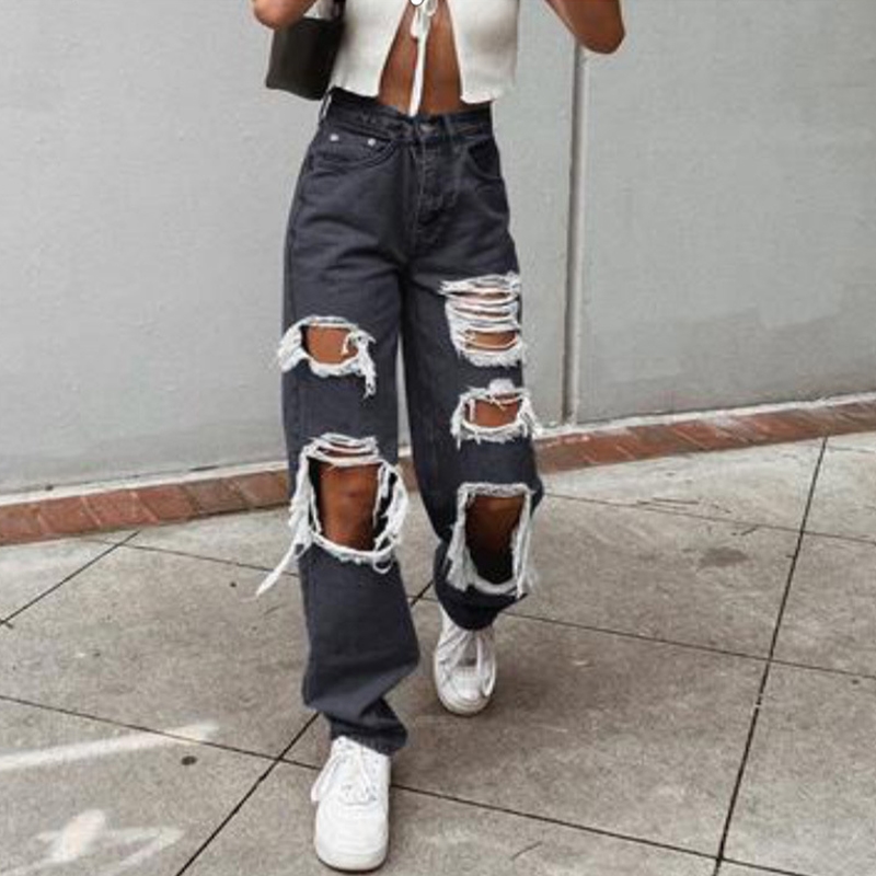Solid Color Ripped Straight Jeans