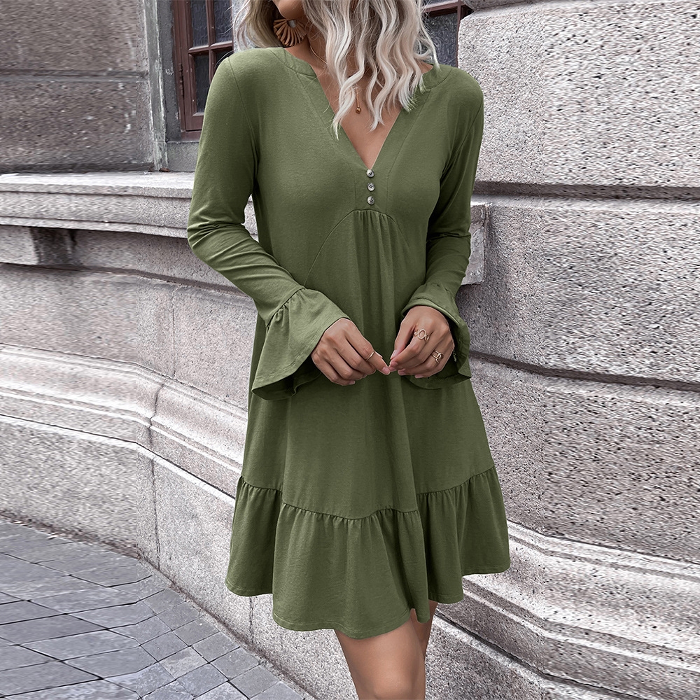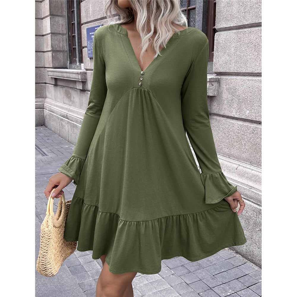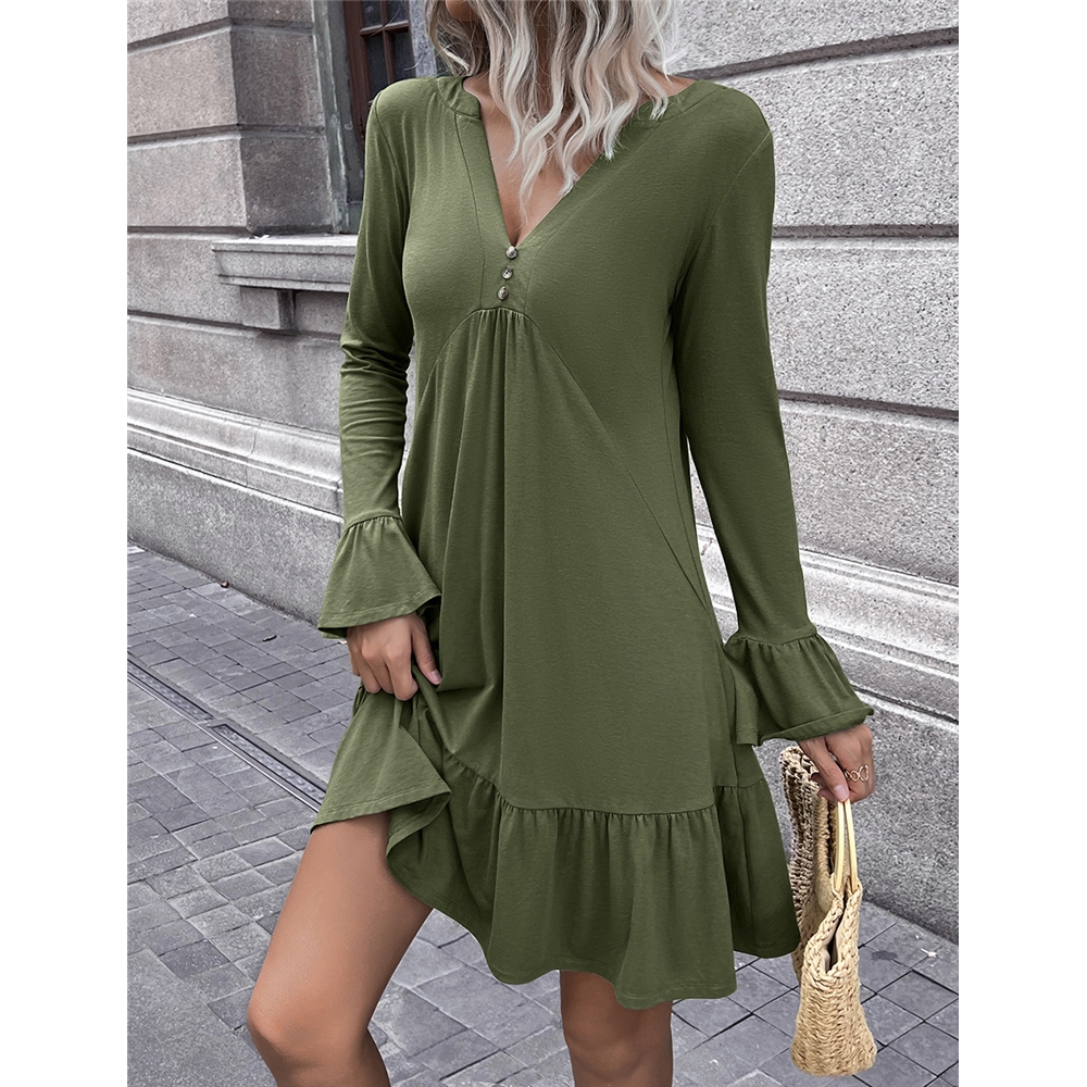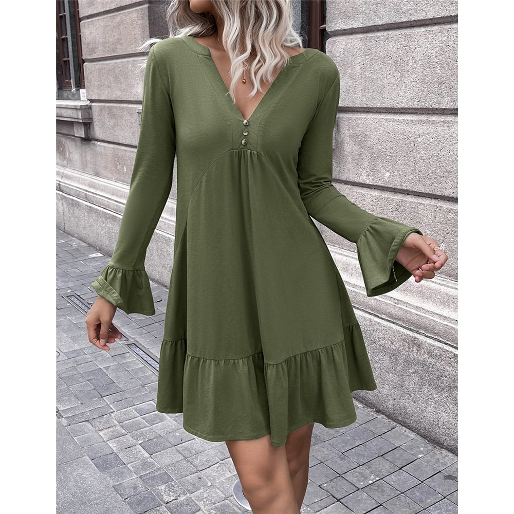 Solid Color V Neck Ruffle Sleeve Mini Dress