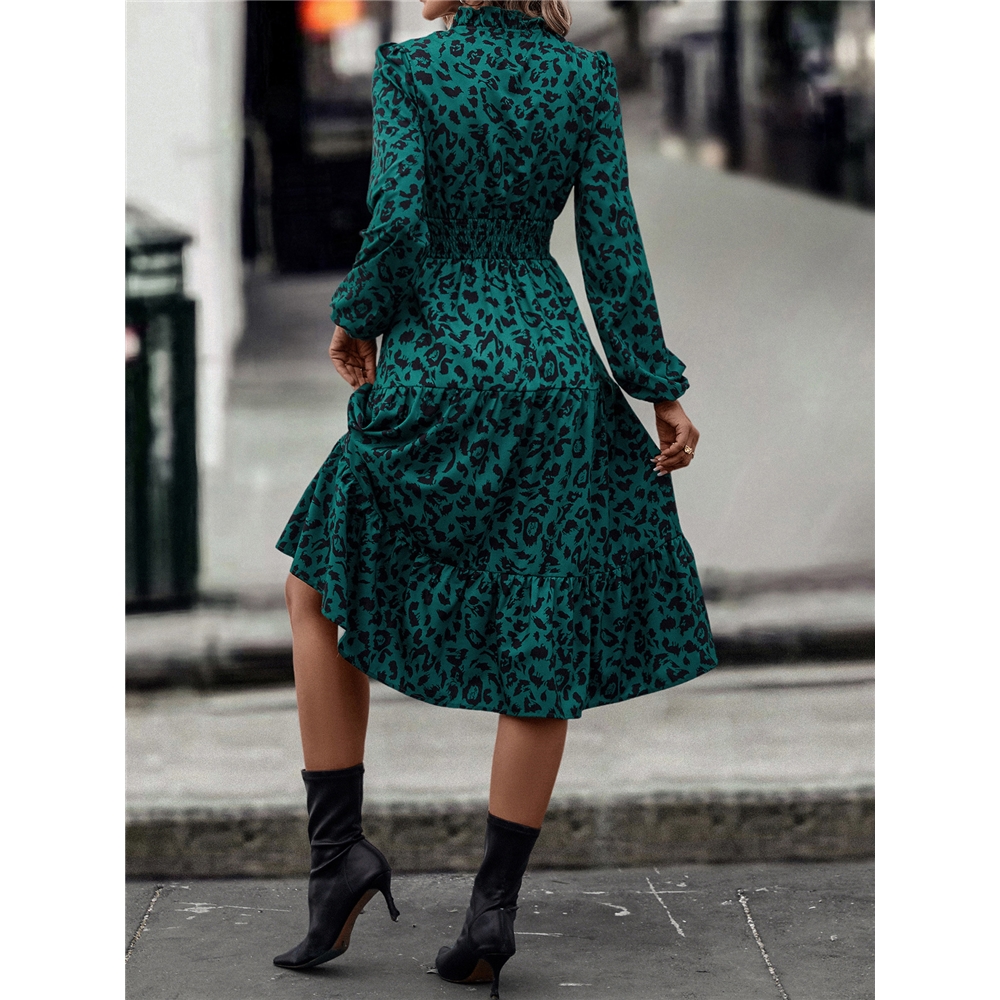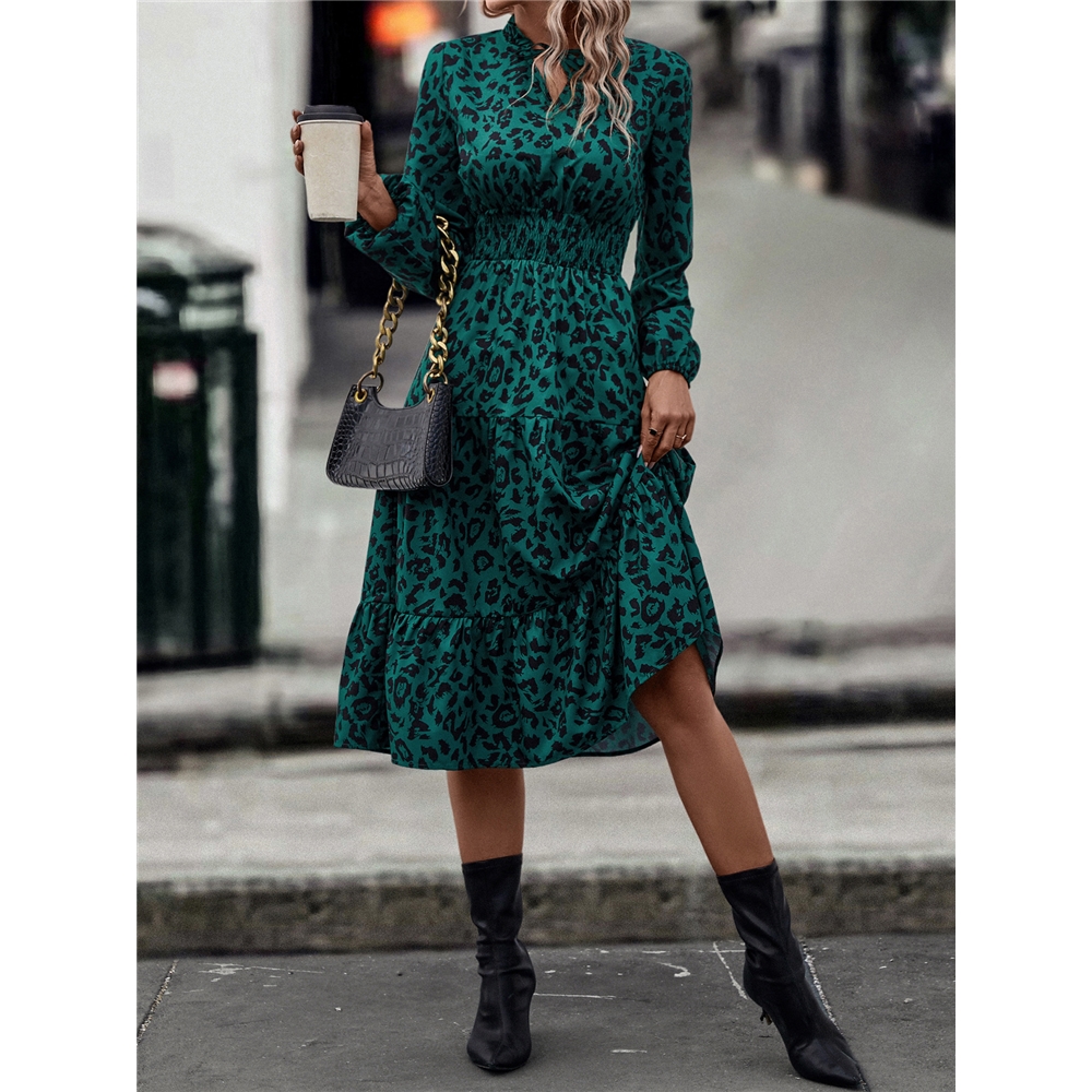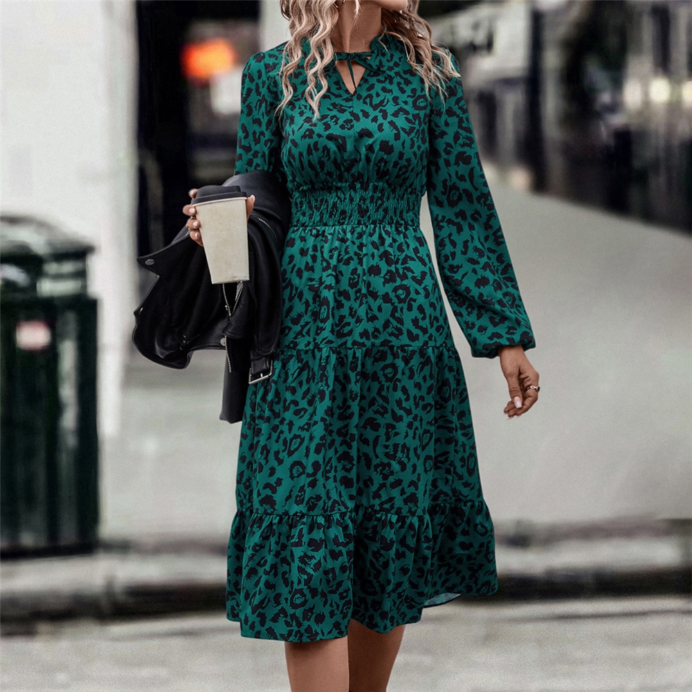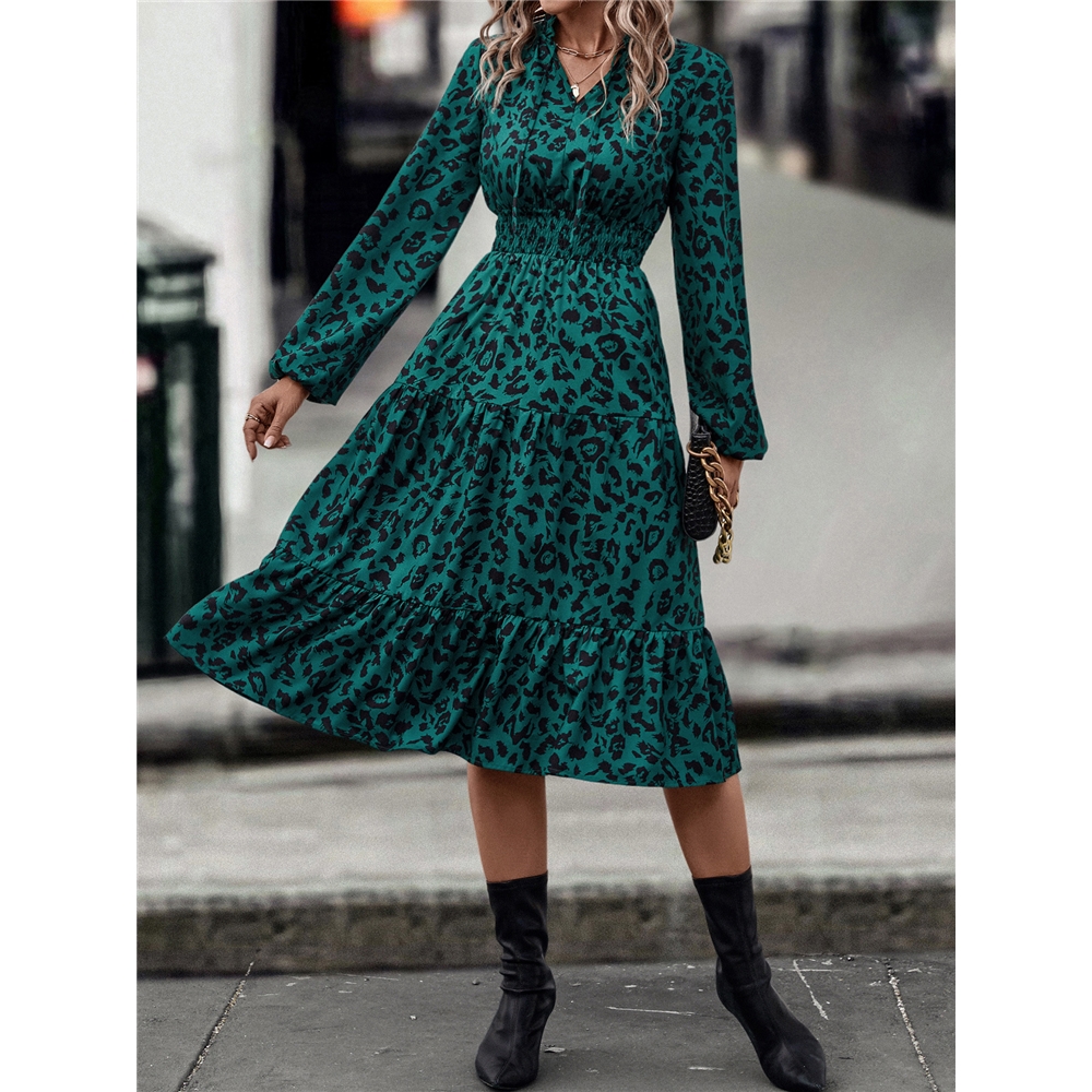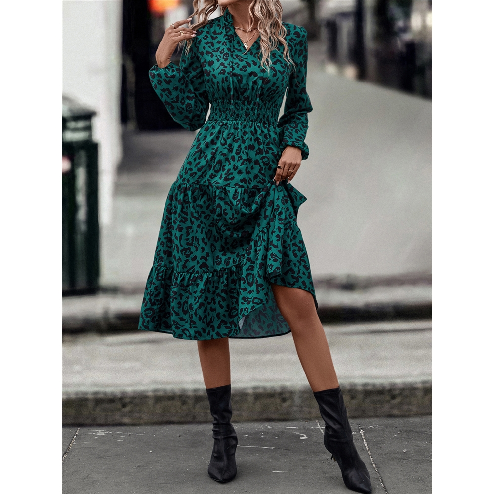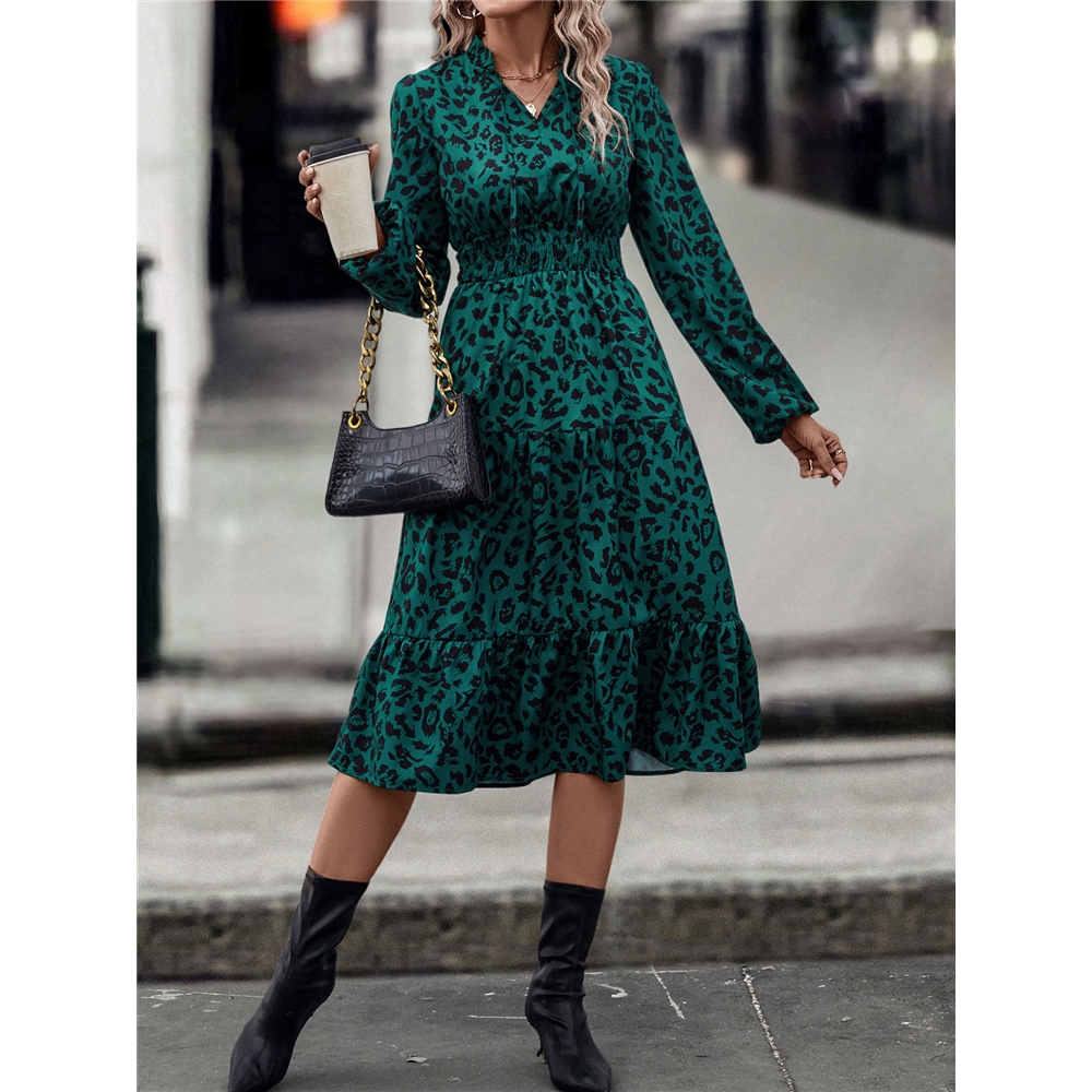 Long-Sleeved V-Neck High Waisted Drawstring Dresses
