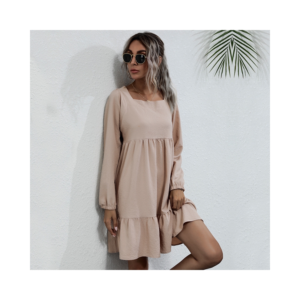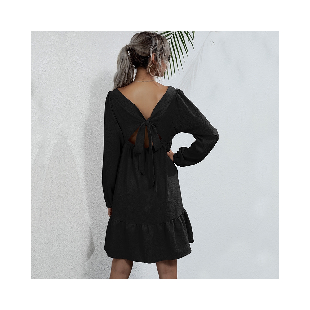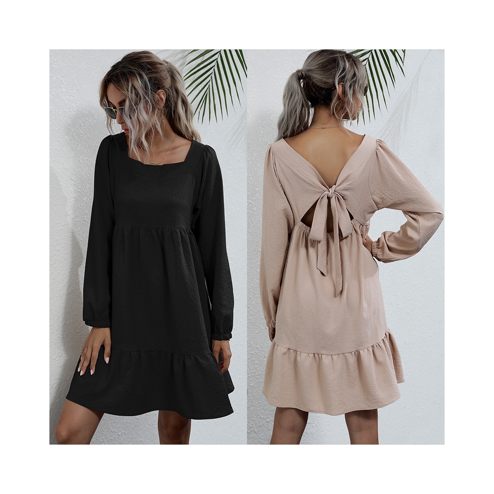 Solid Color Long Sleeves Square Neck Backless Loose Mini Dress