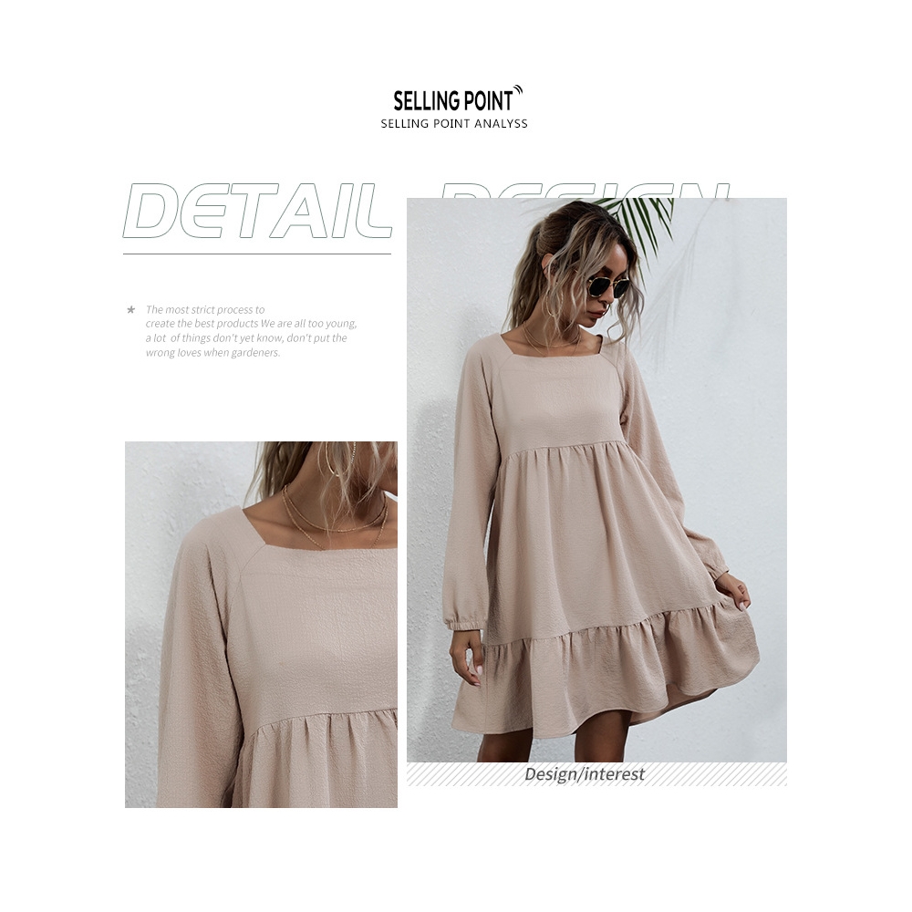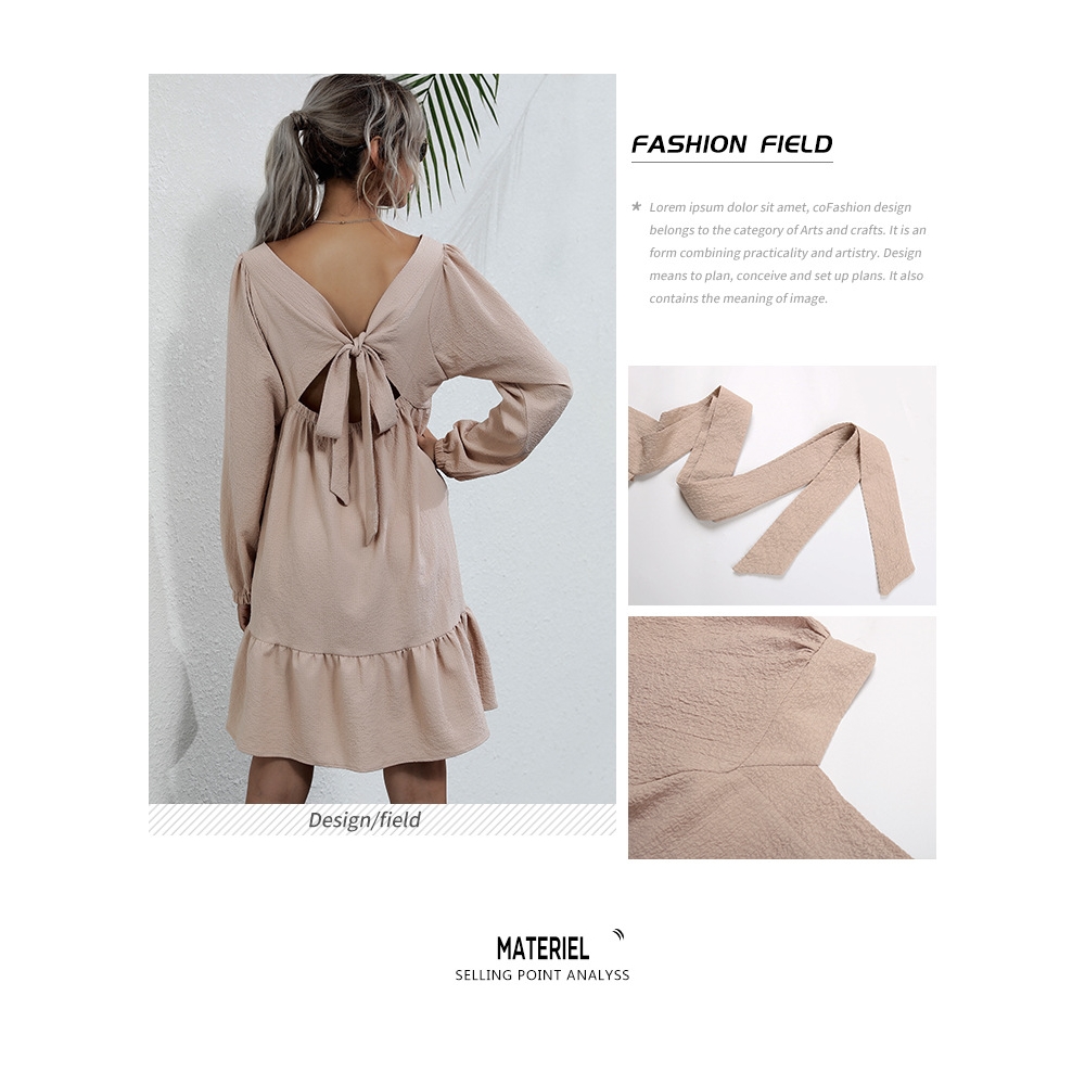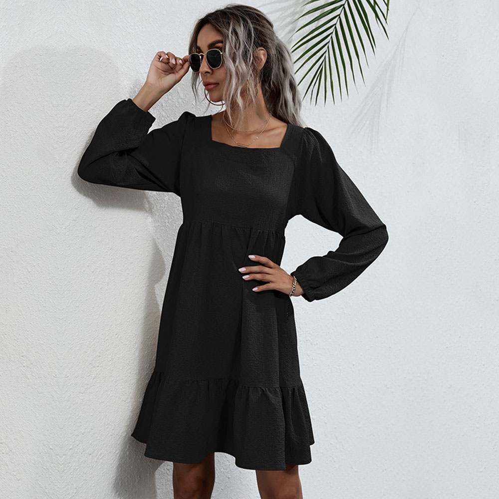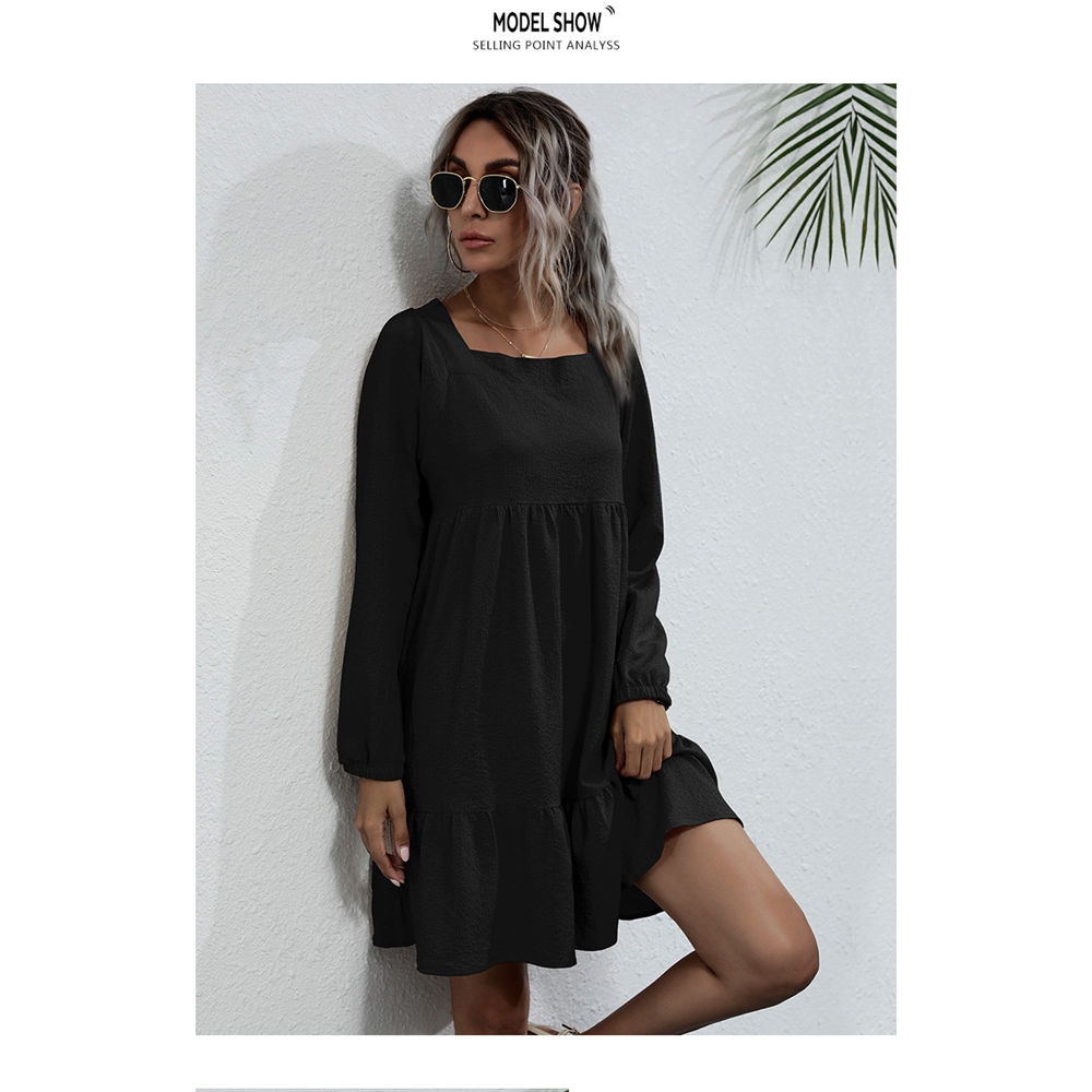 Solid Color Long Sleeves Square Neck Backless Loose Mini Dress