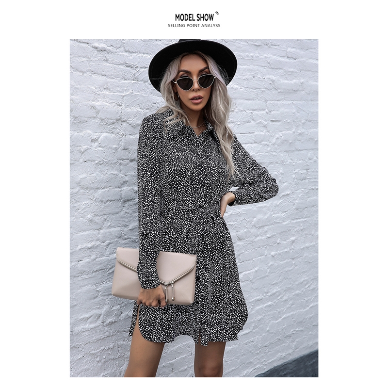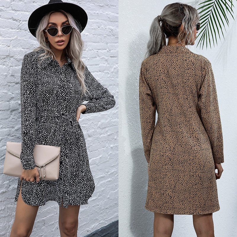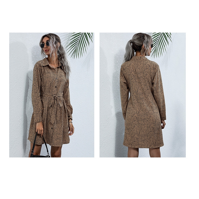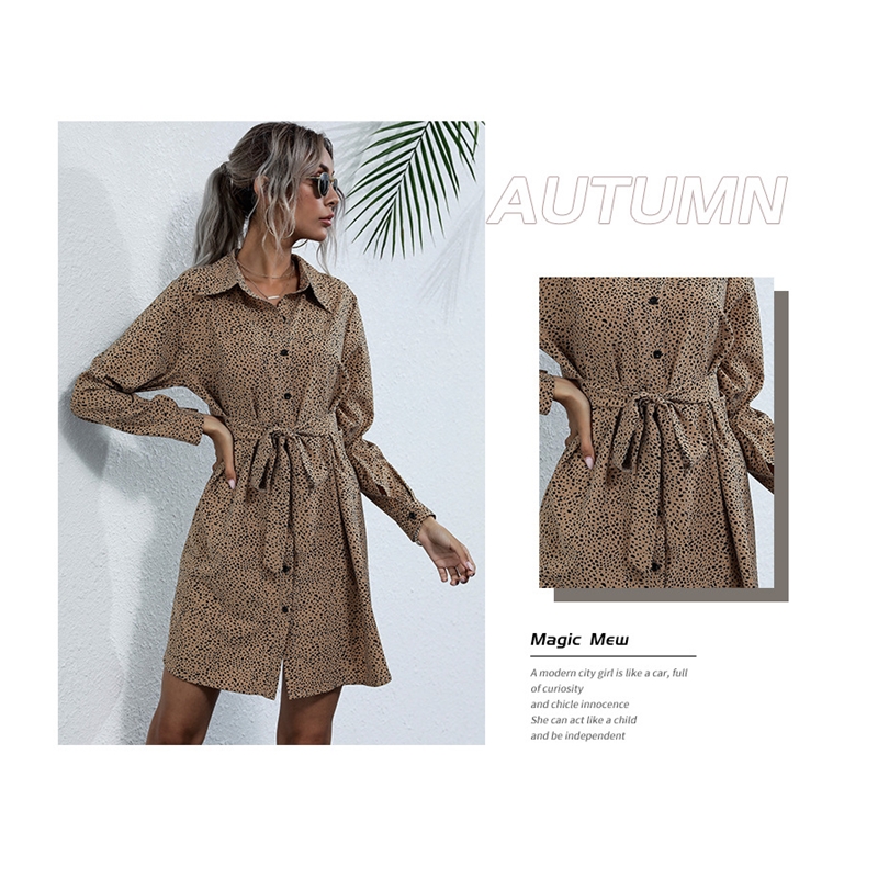 Long Sleeves Lapel Leopard Print Tied Shirt Mini Dress