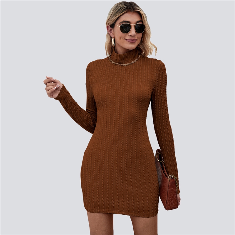 Solid Color Long Sleeves Half Turtleneck Backless Knitted Mini Dress