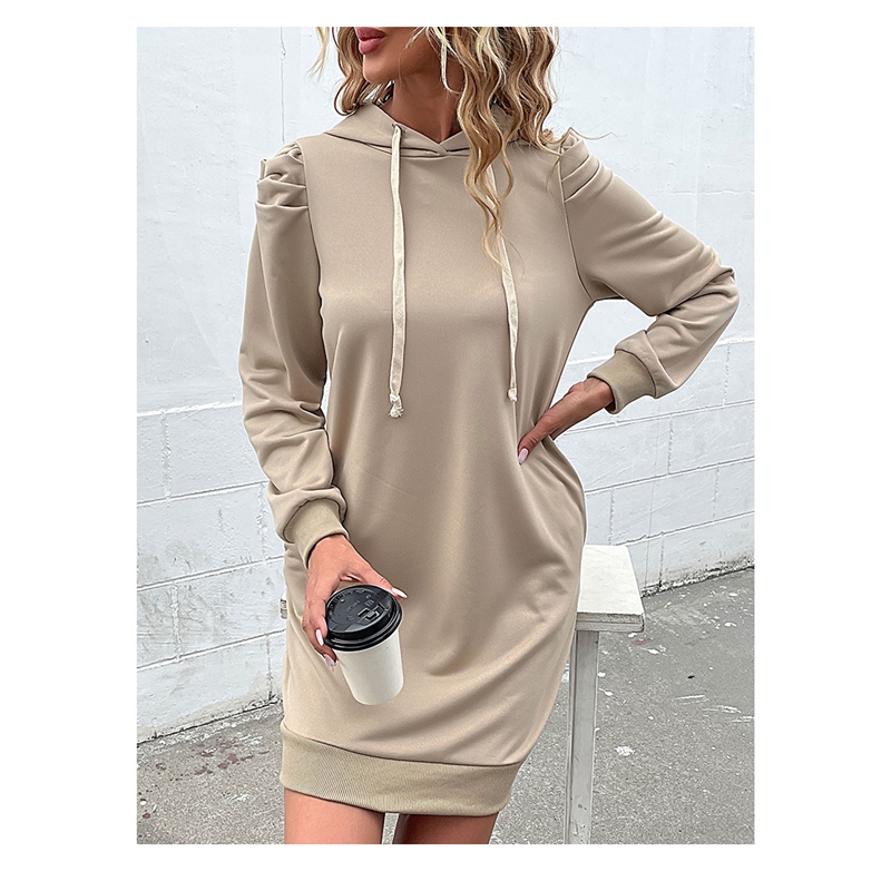 Solid Color Long Sleeves Hooded Casual Sweatshirt Dress