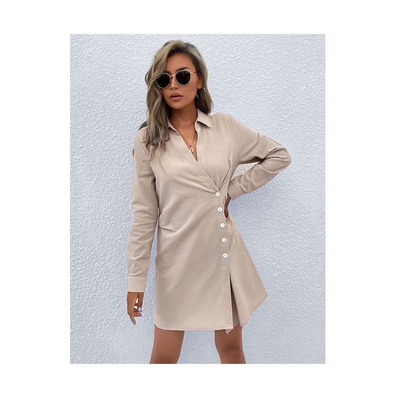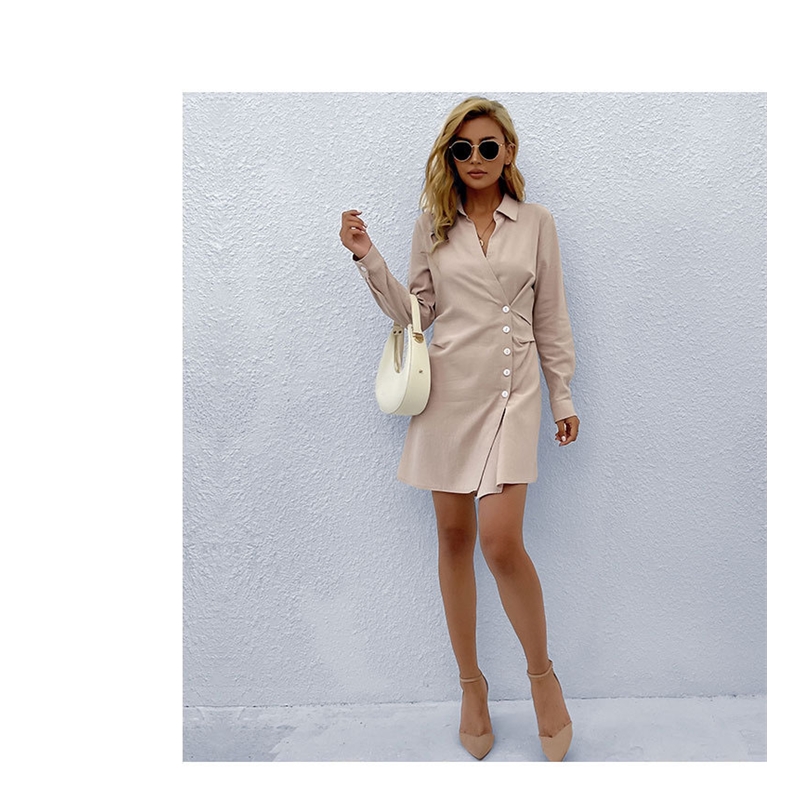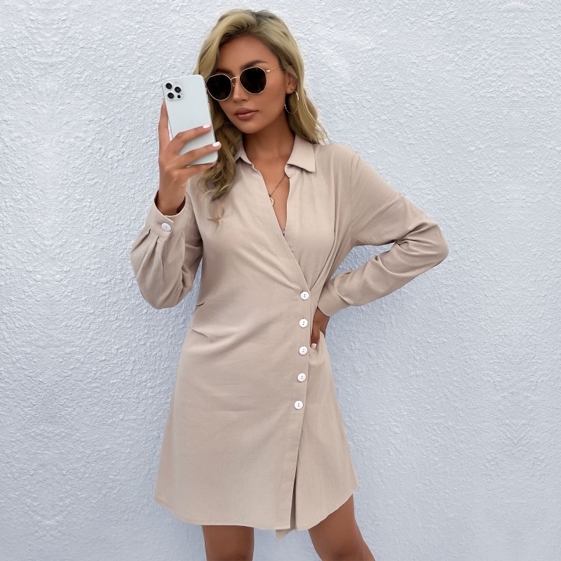 Solid Color Long Sleeves Lapel Buttoned Shirt Dress