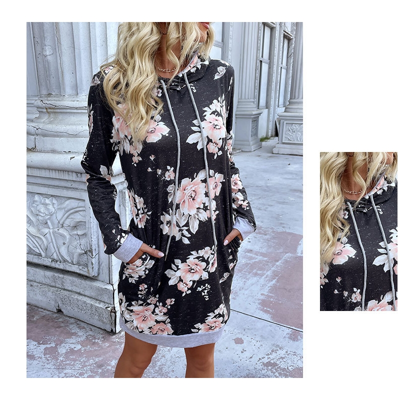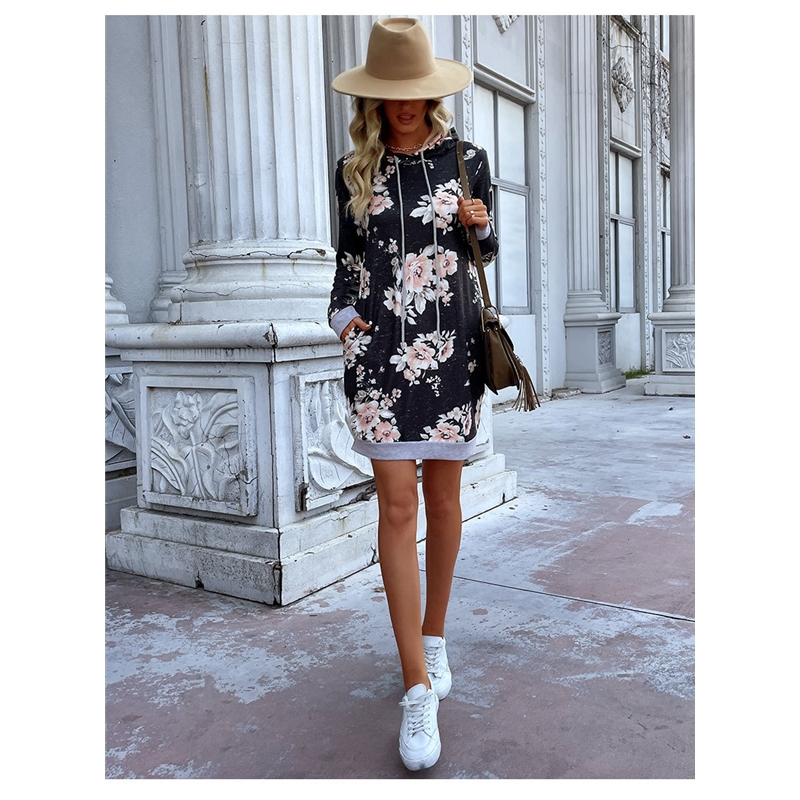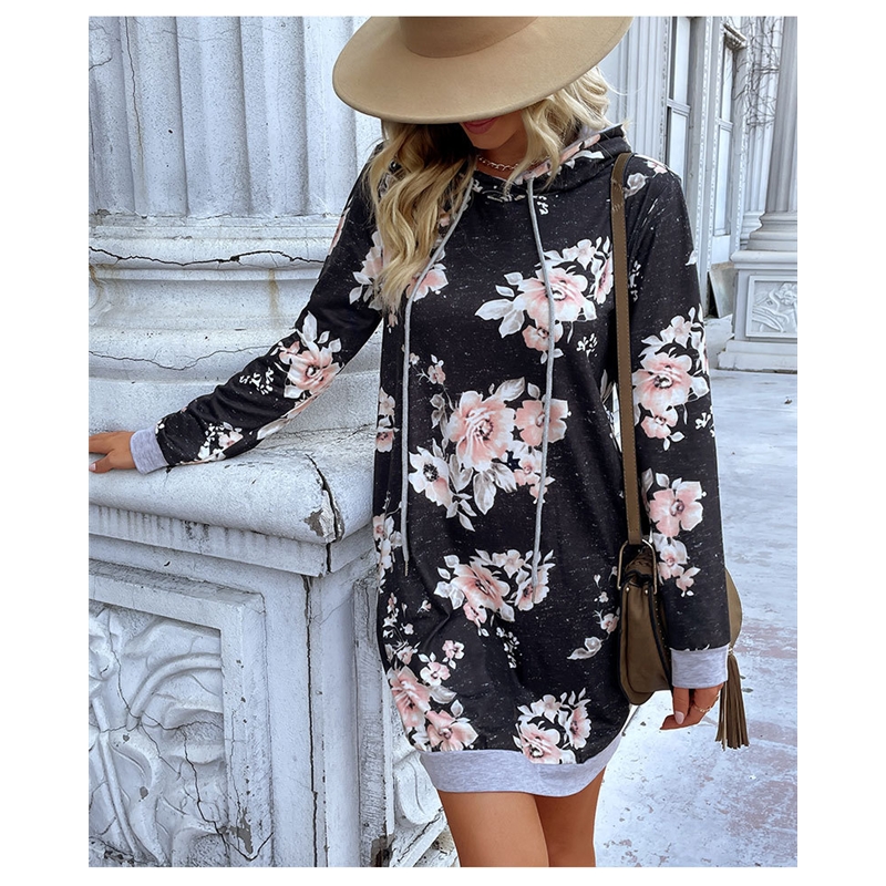 Long Sleeves Hooded Printed Sweatshirt Dress