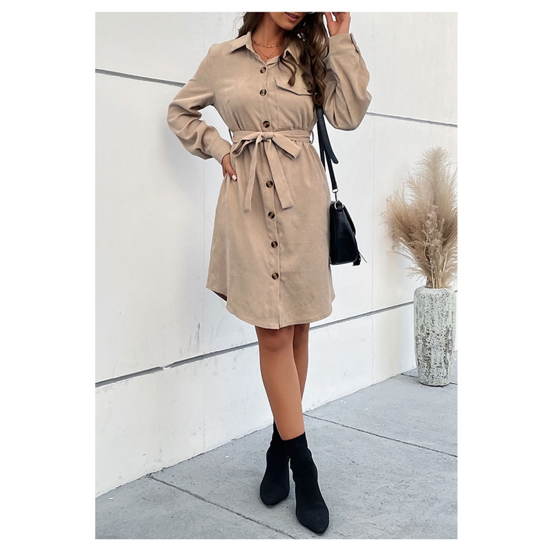 Solid Color Long Sleeved Cordury Shirt Dress