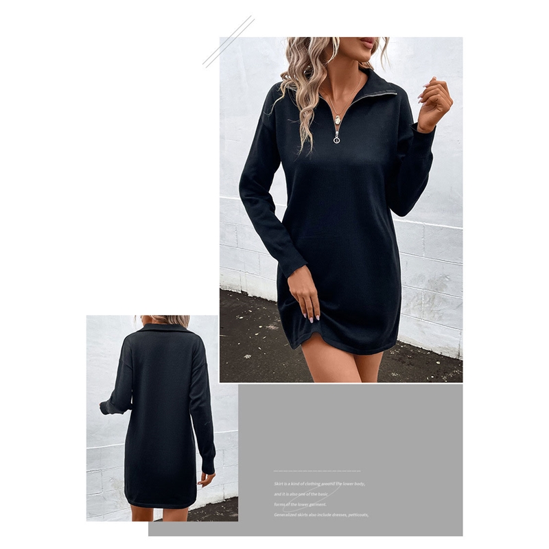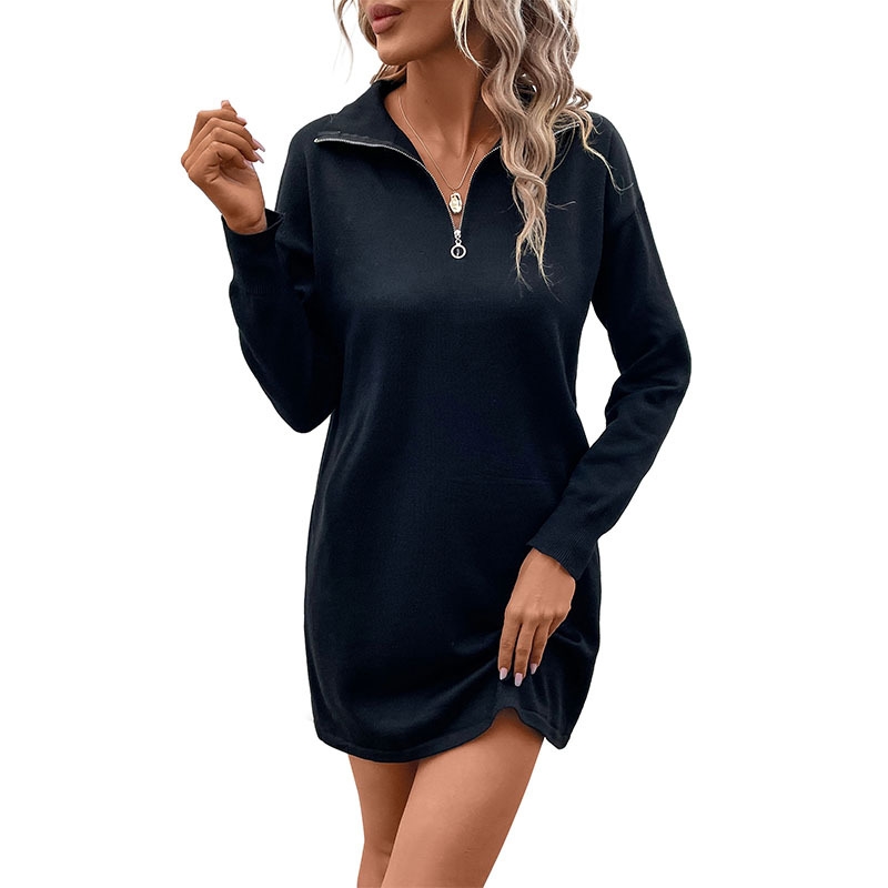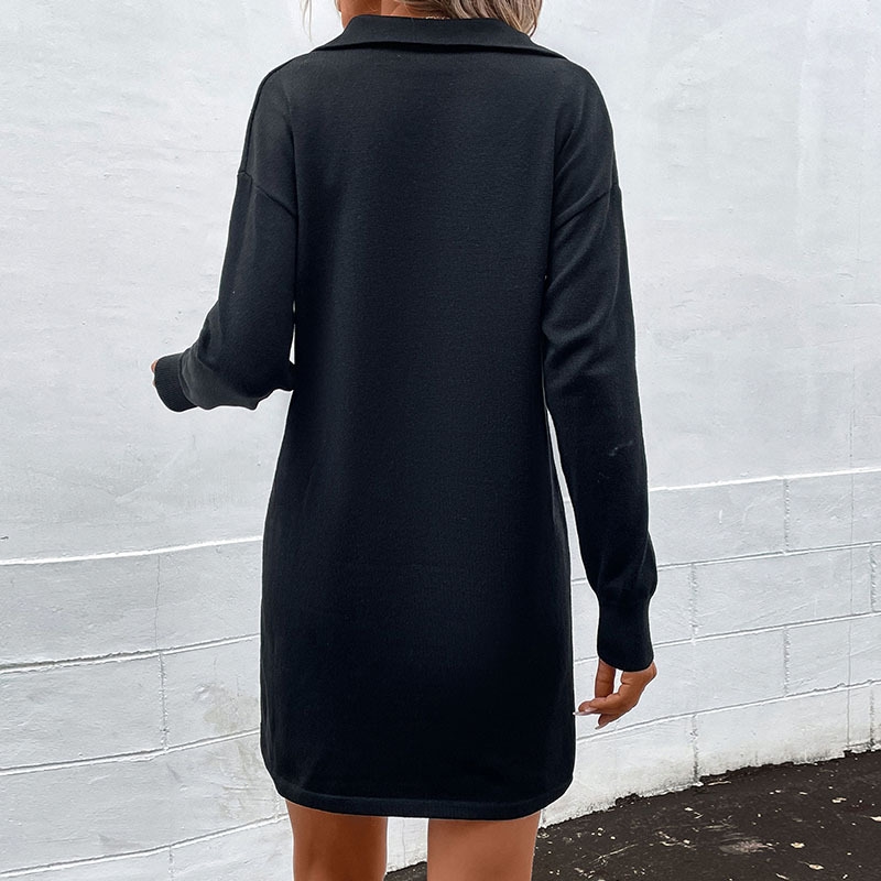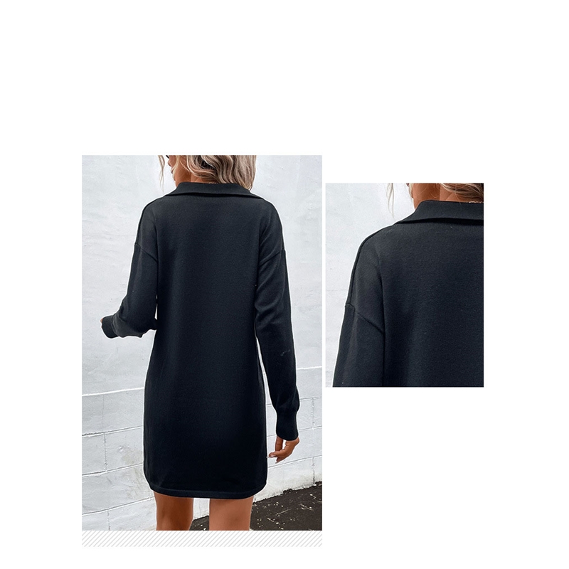 Solid Color Long Sleeved Lapel Zipper Sweater Dress