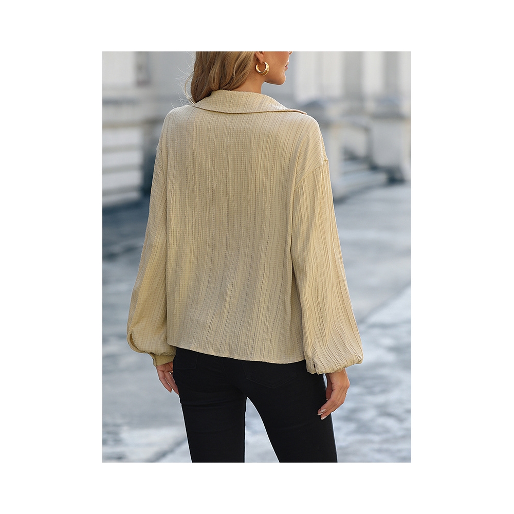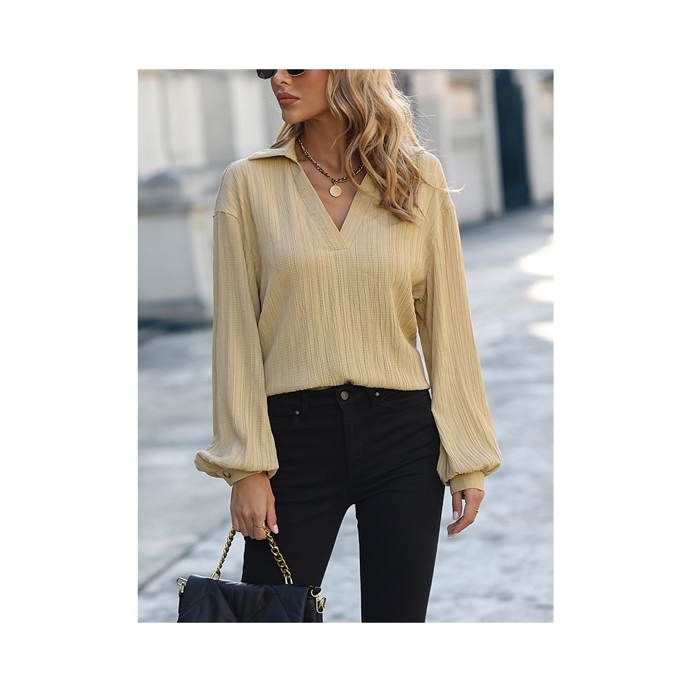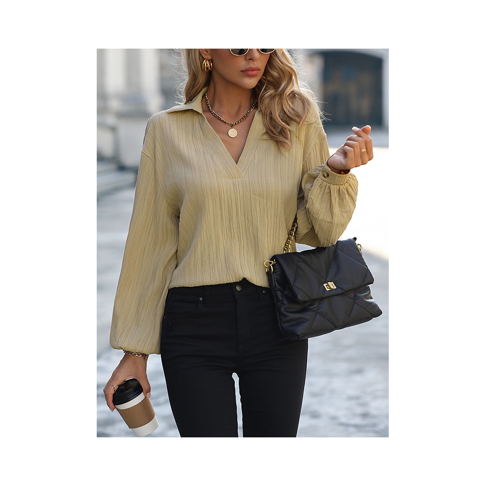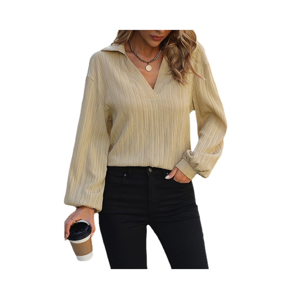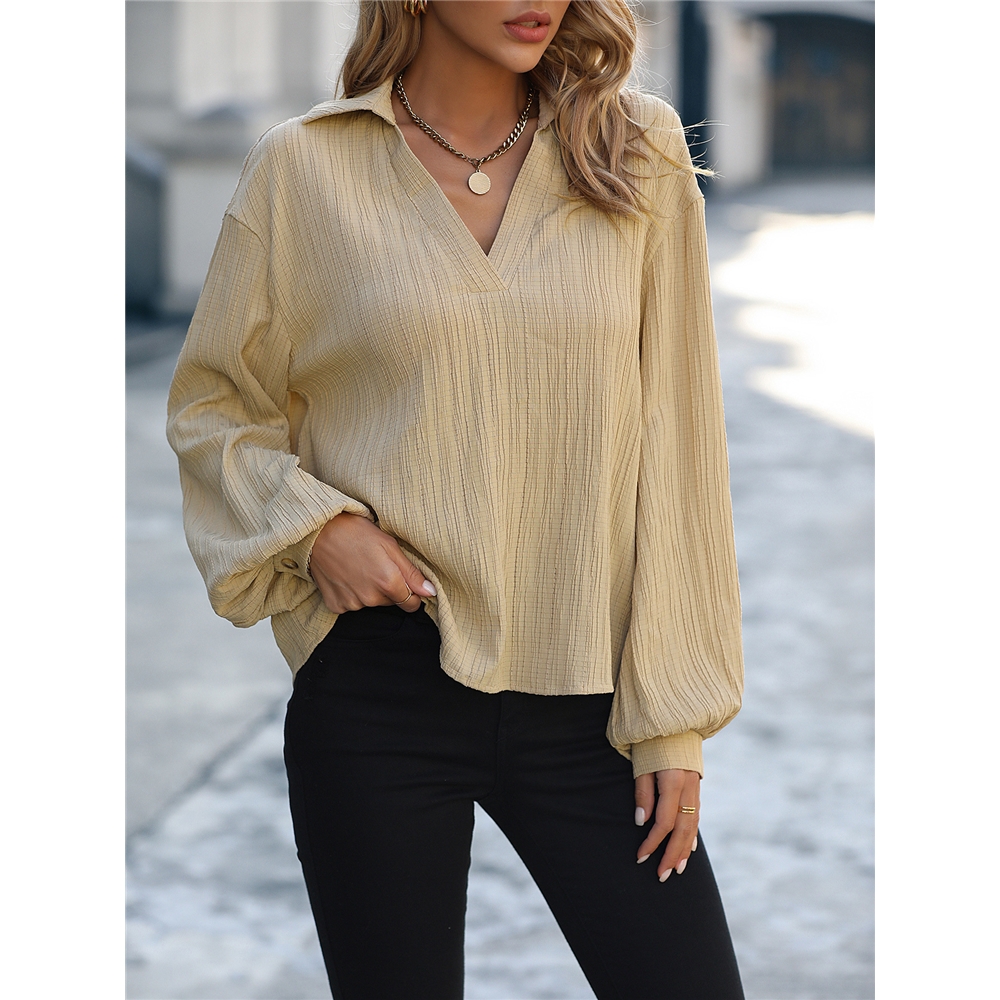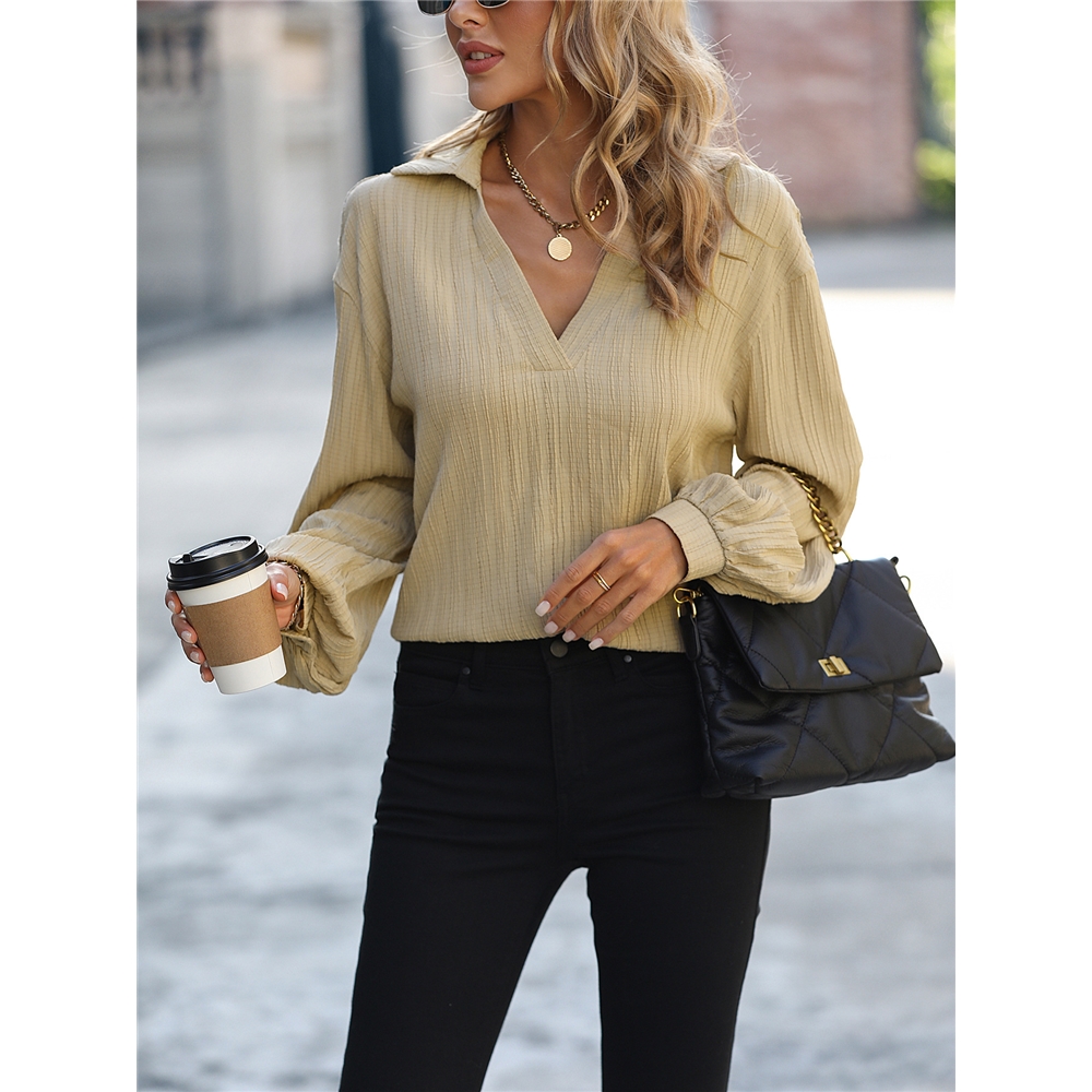 Solid Color Long Sleeves V-Neck Casual Loose Top