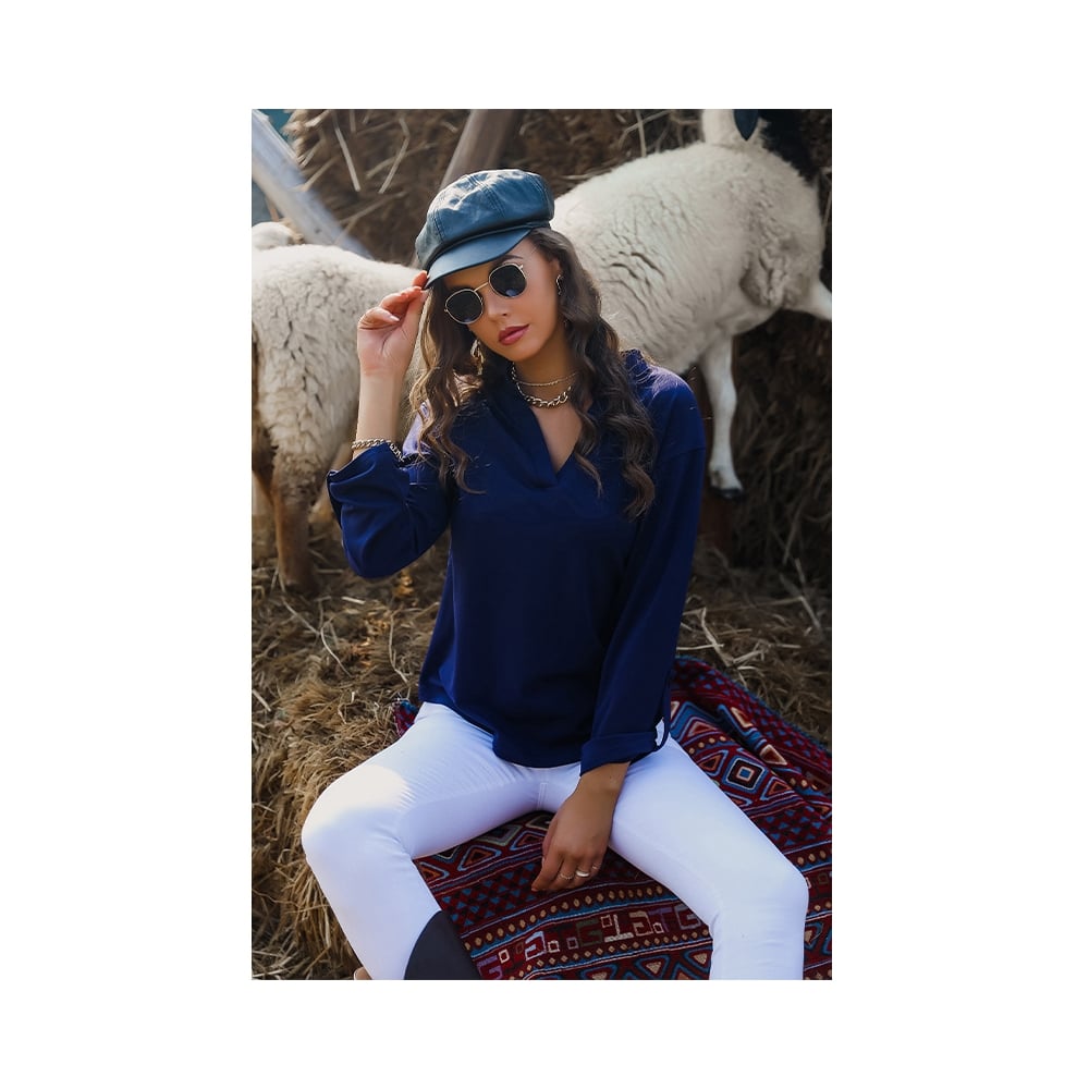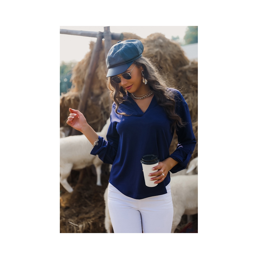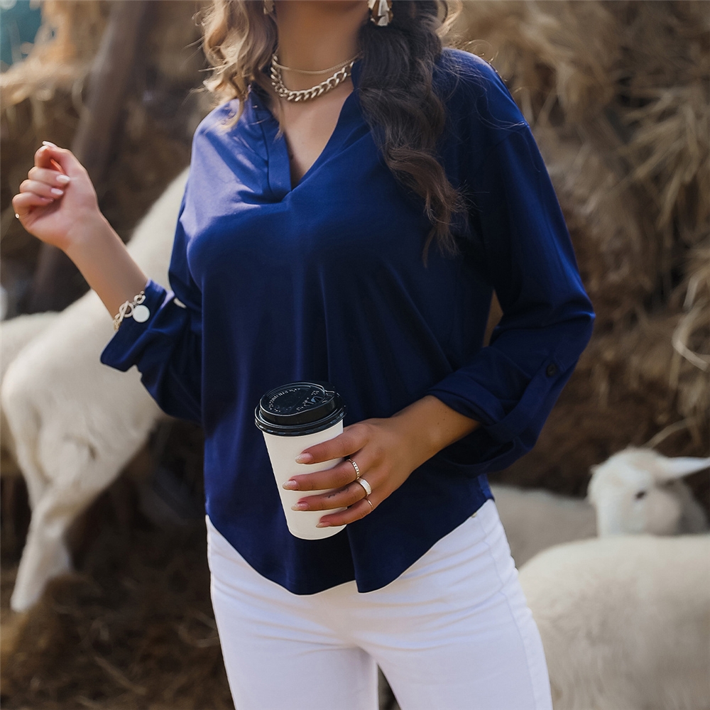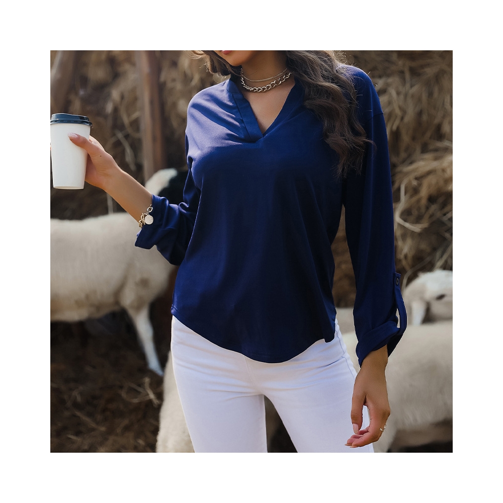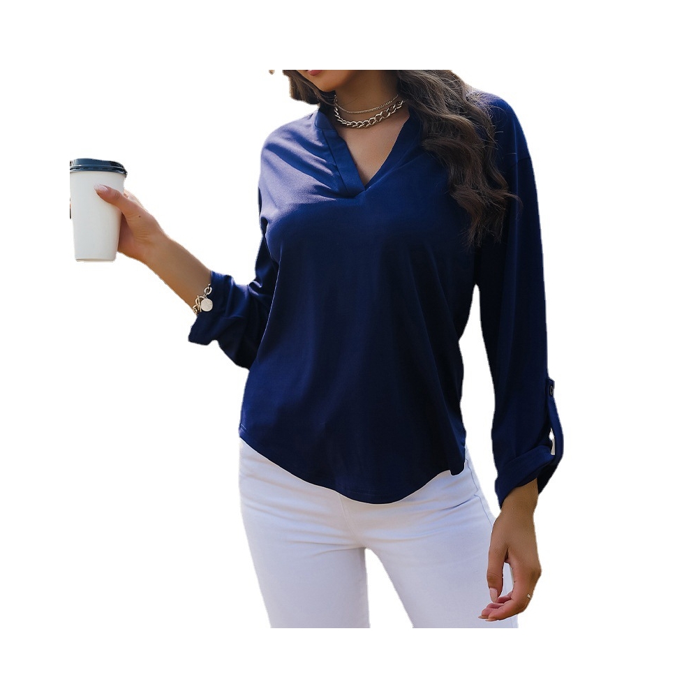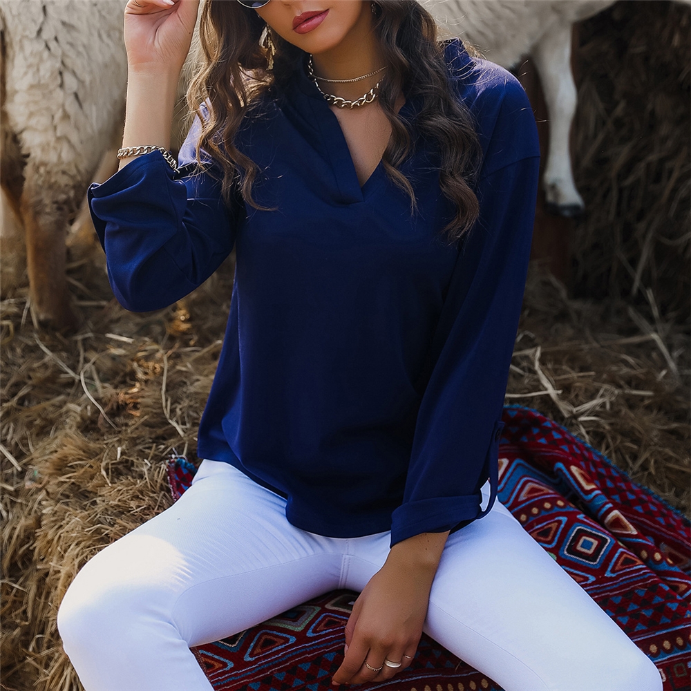 Solid Color V-Neck Long Sleeves Pullover T-Shirt