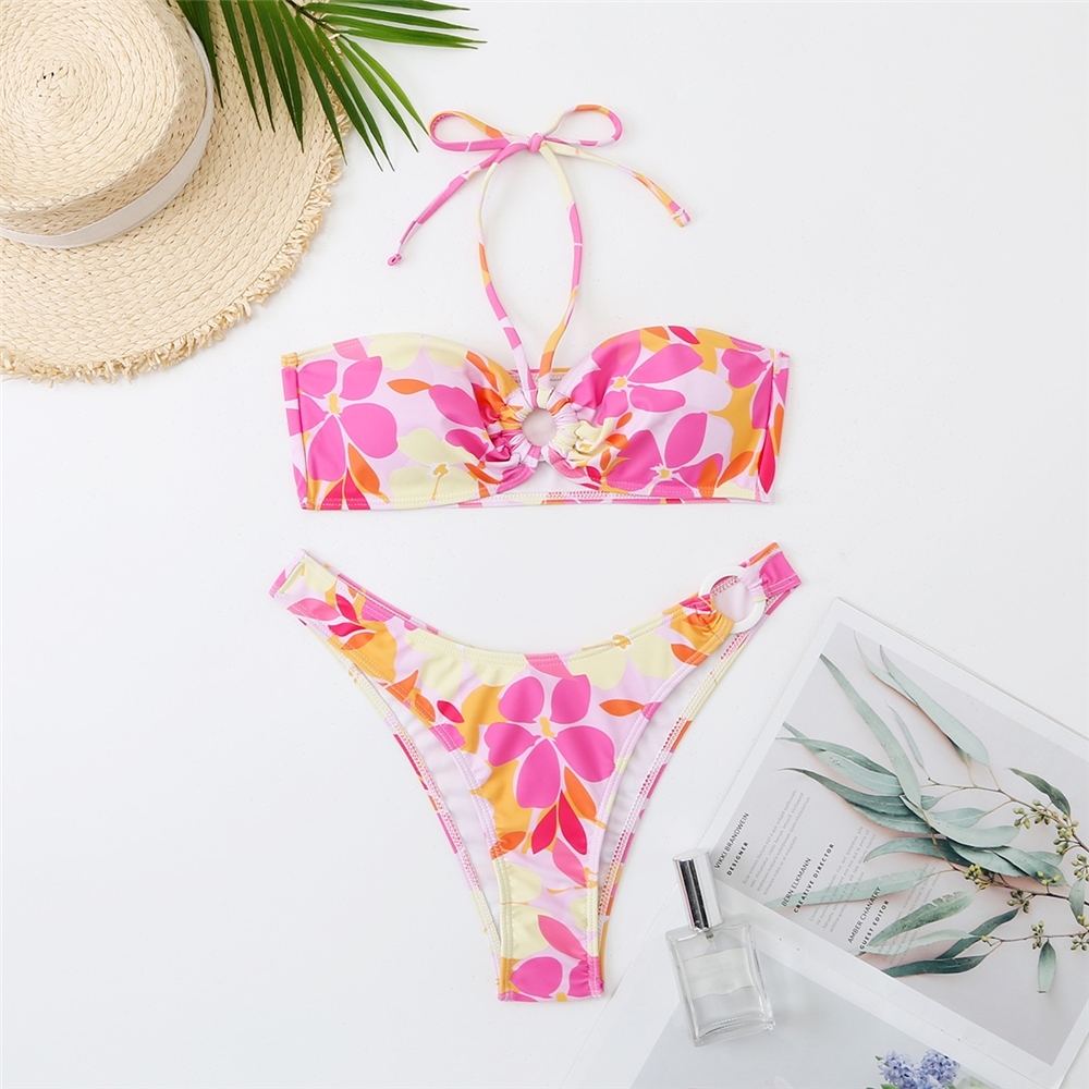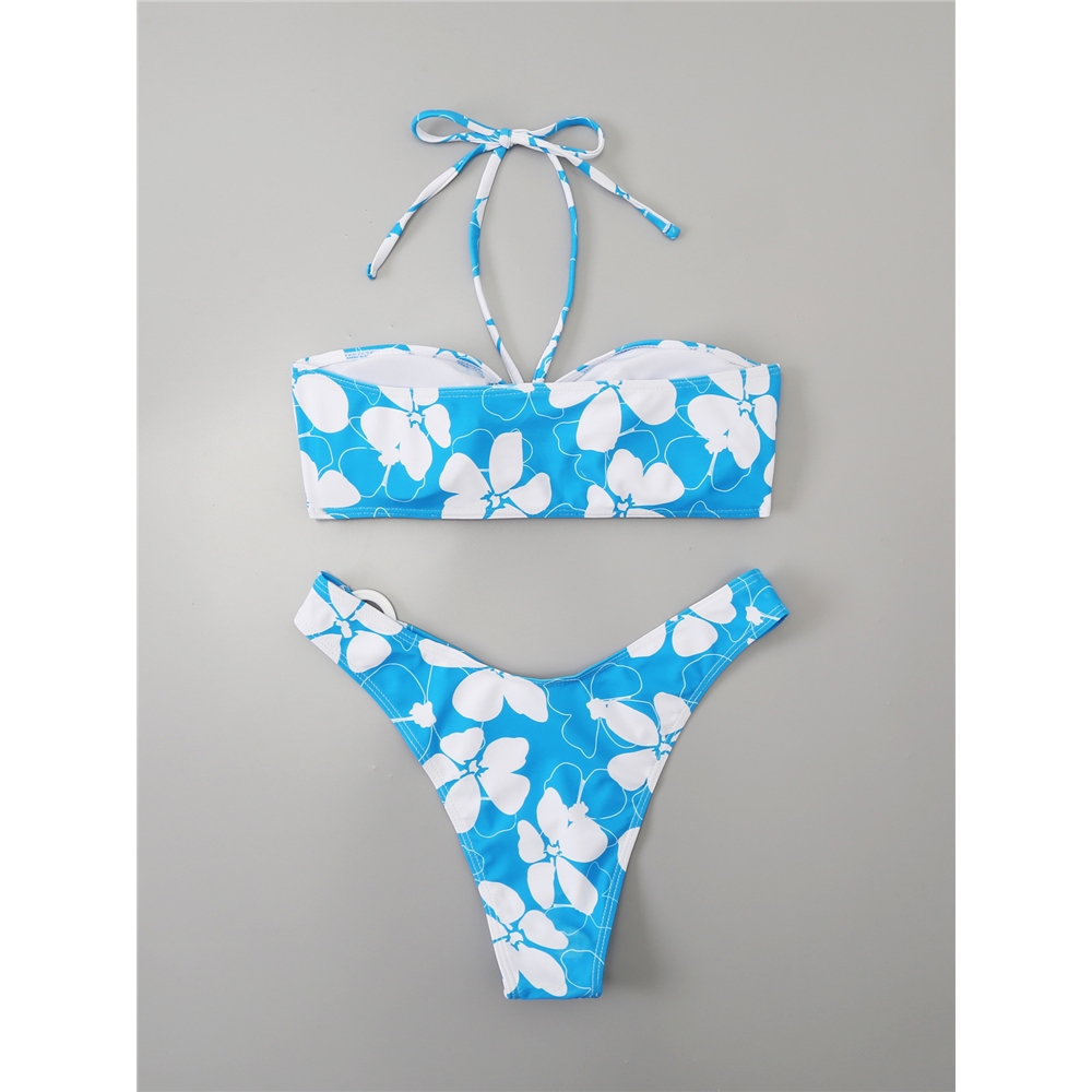 Print Slim Halter High-Waisted Lightweight Swimwear