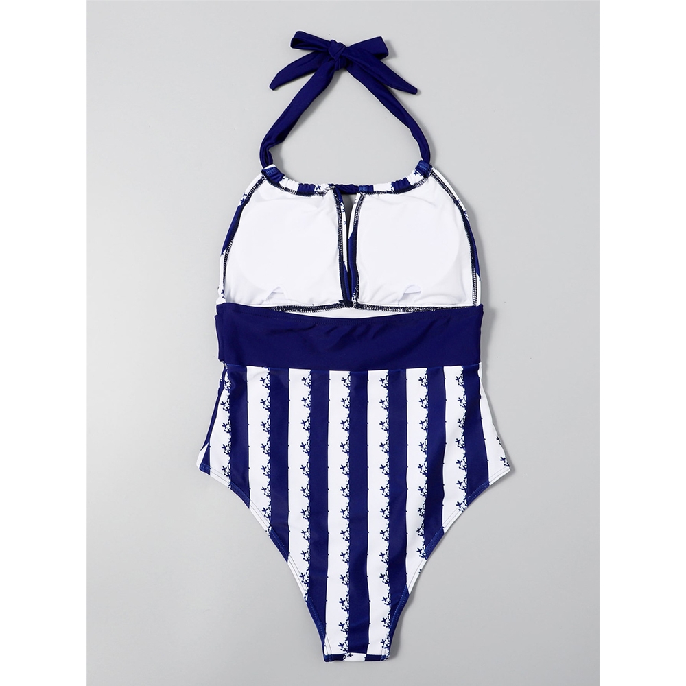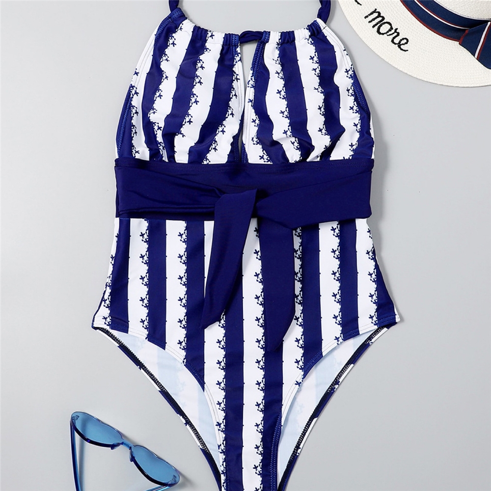 Anti-Stress Halter Striped Tied Slim Swimwear