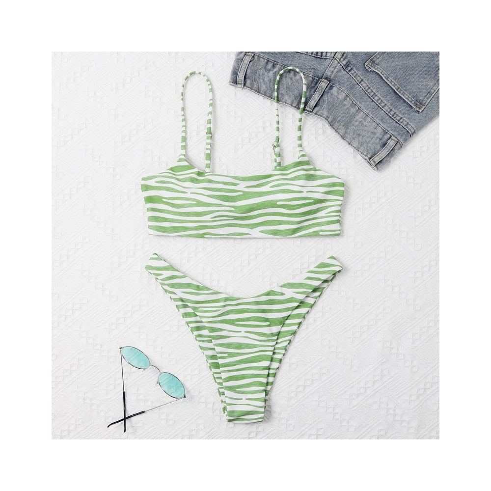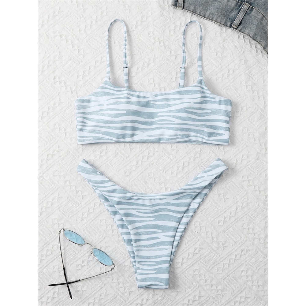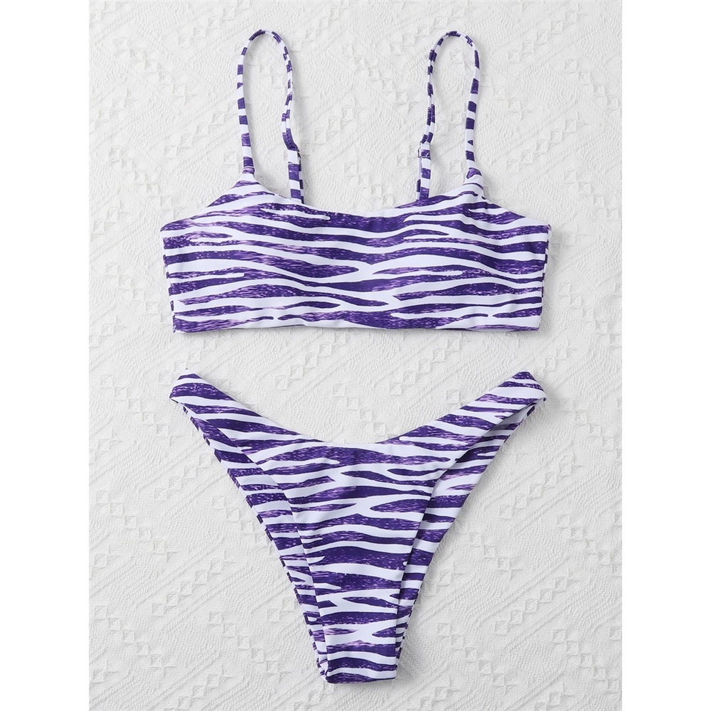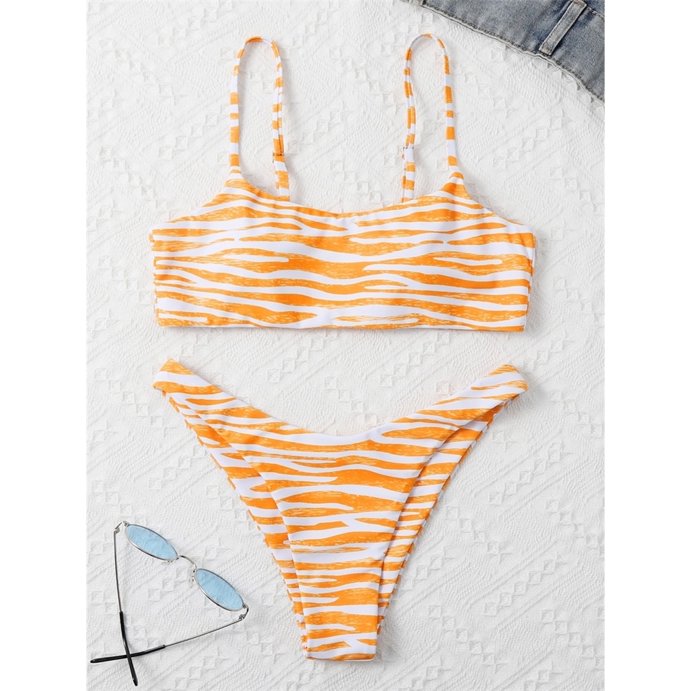 Zebra Striped Spaghetti-Neck Padded Bra And Briefs Two Pieces Bikini Swimsuits