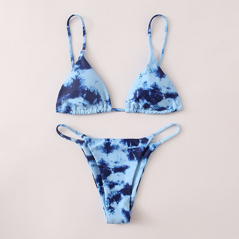 Tie-Dyed Padded Bra And Thong Two Pieces Bikini Swimsuits