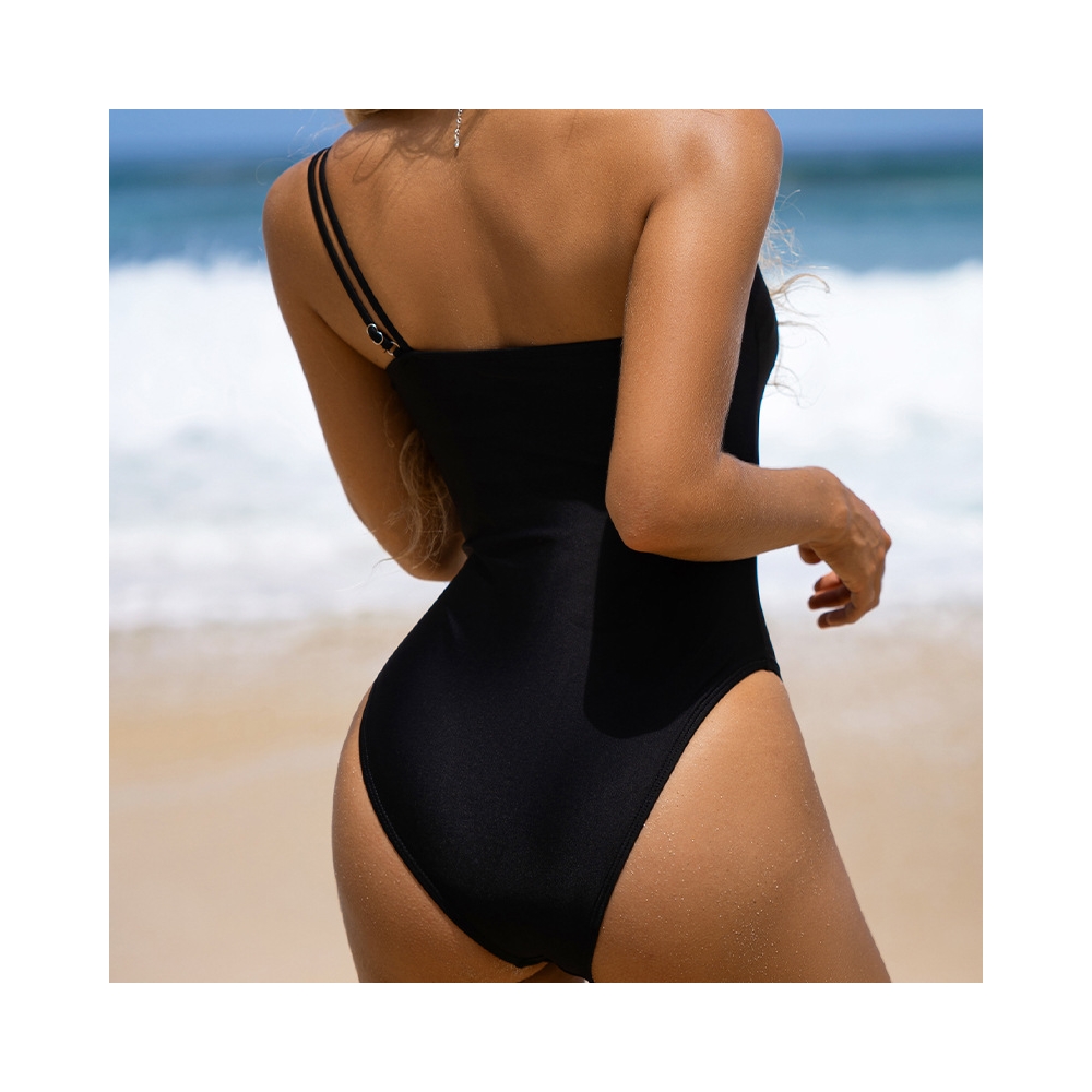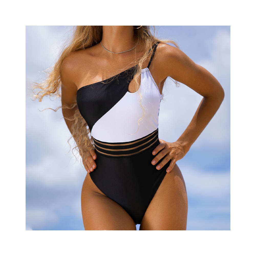 Contrast Color One-Shoulder Padded Bra And Briefs One Piece Bikini