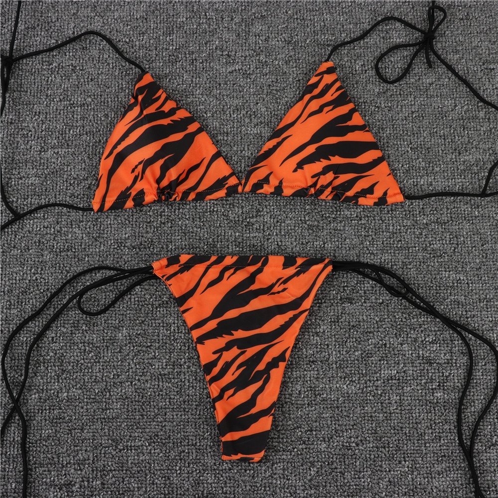 Printing Lace-Up Brazilian Padded Bra And Briefs Two Pieces Bikini