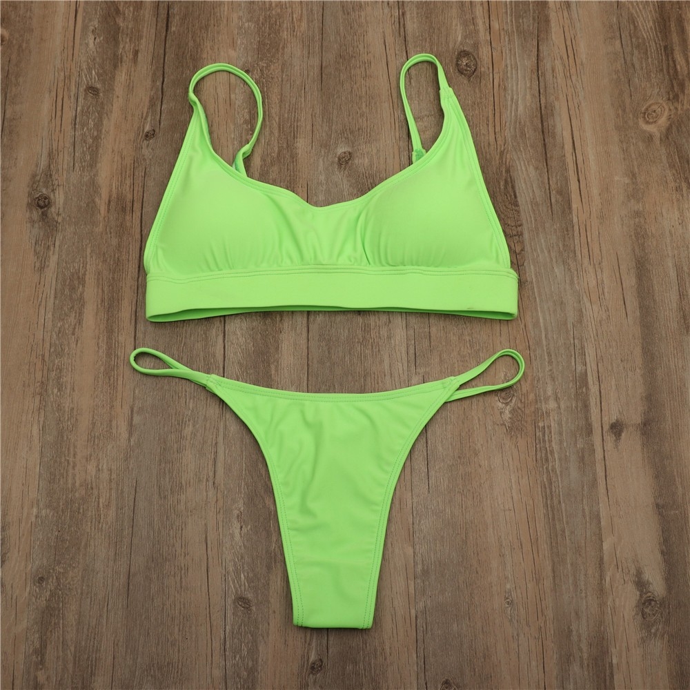 Solid Color Push-Up Padded Bra And Briefs Two Pieces Bikini