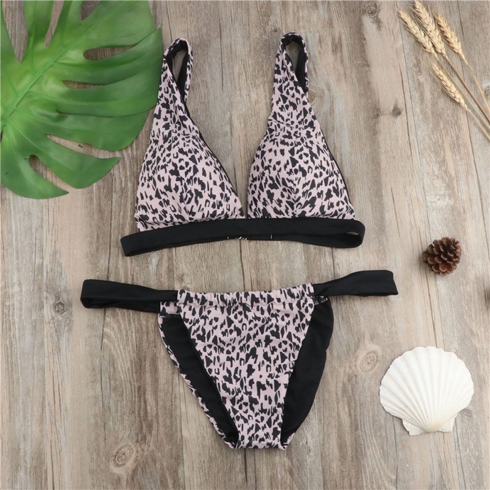 Leopard Printed Padded Bra And Briefs Two Pieces Bikini