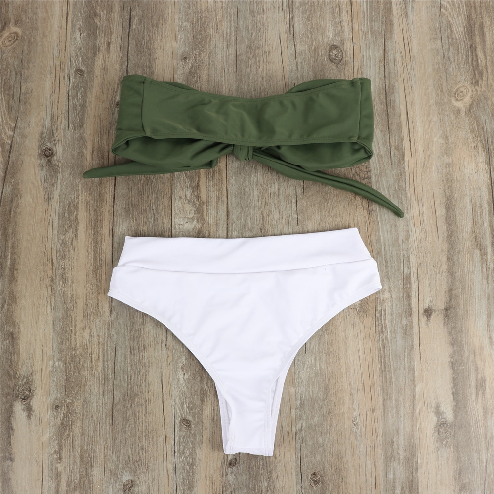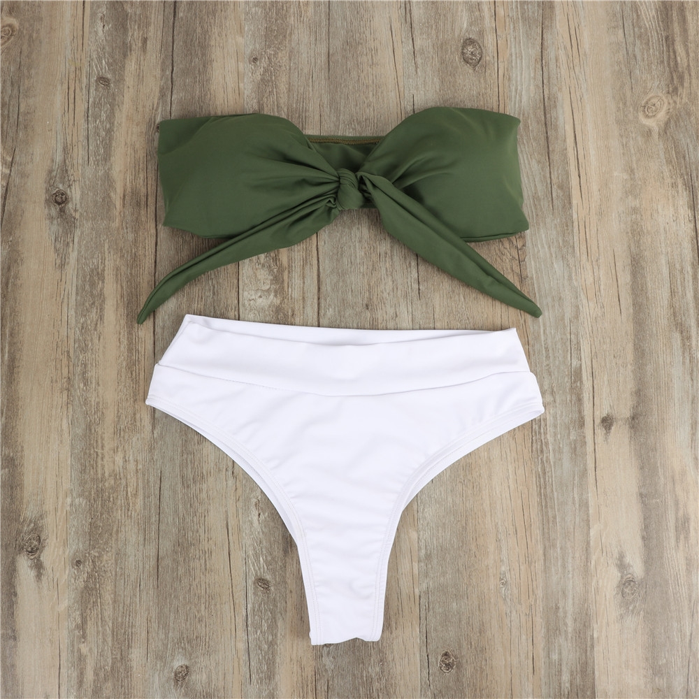 Knotted Padded Tube And High Waisted Briefs Two Pieces Bikini