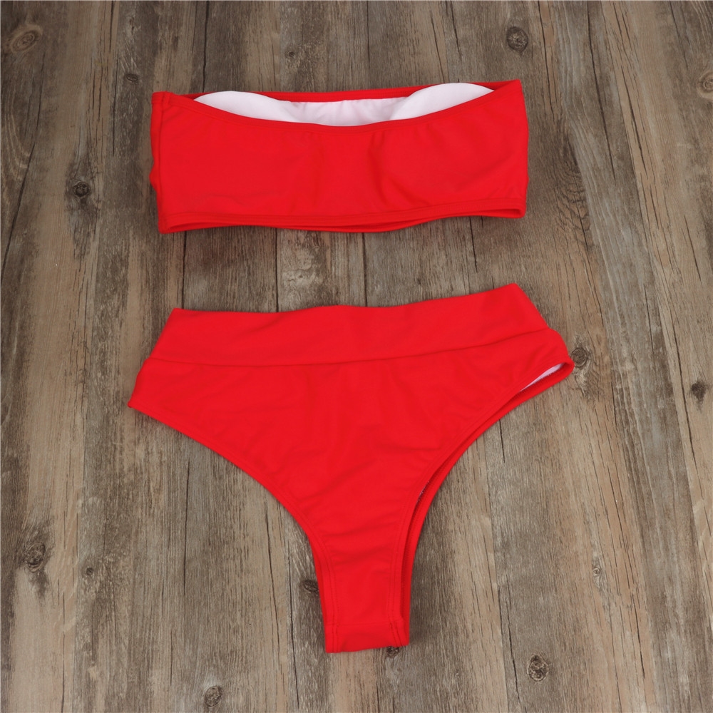 Solid Color Padded Tube And Briefs Two Pieces Bikini