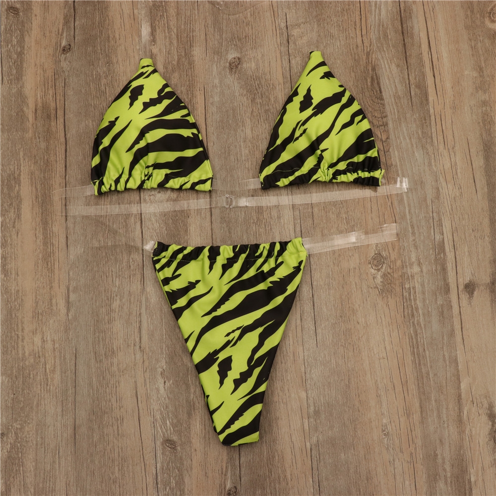 Transparent Straps Push-Up Padded Bra And Briefs Two Pieces Bikini