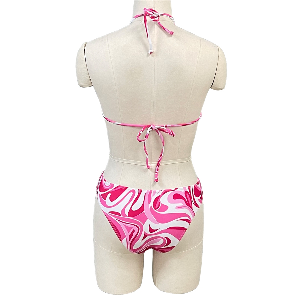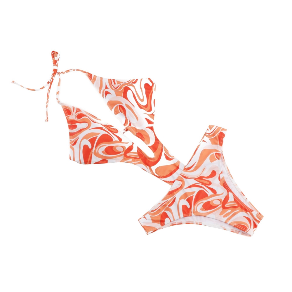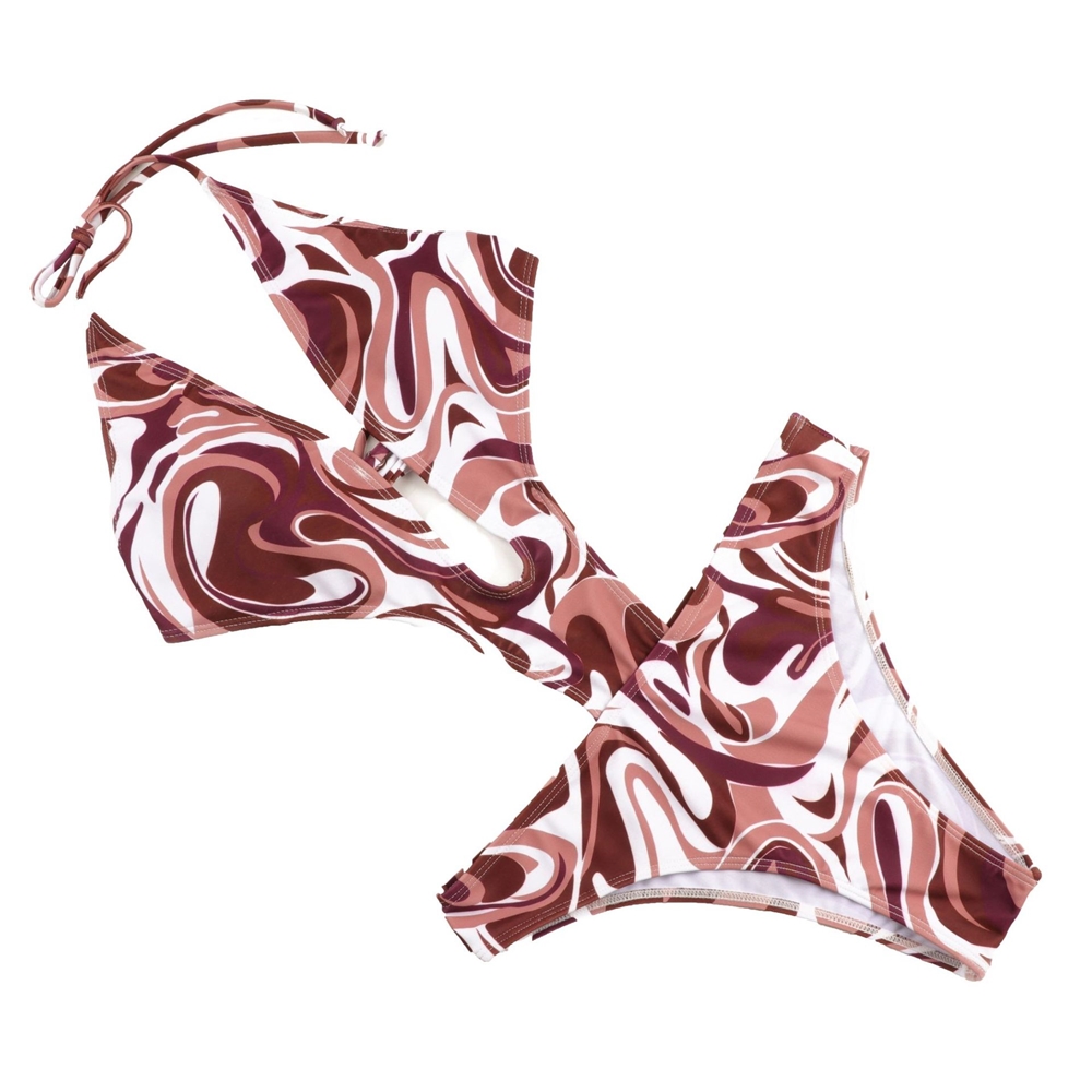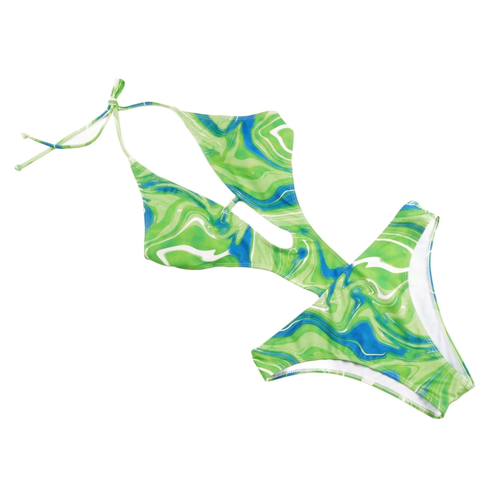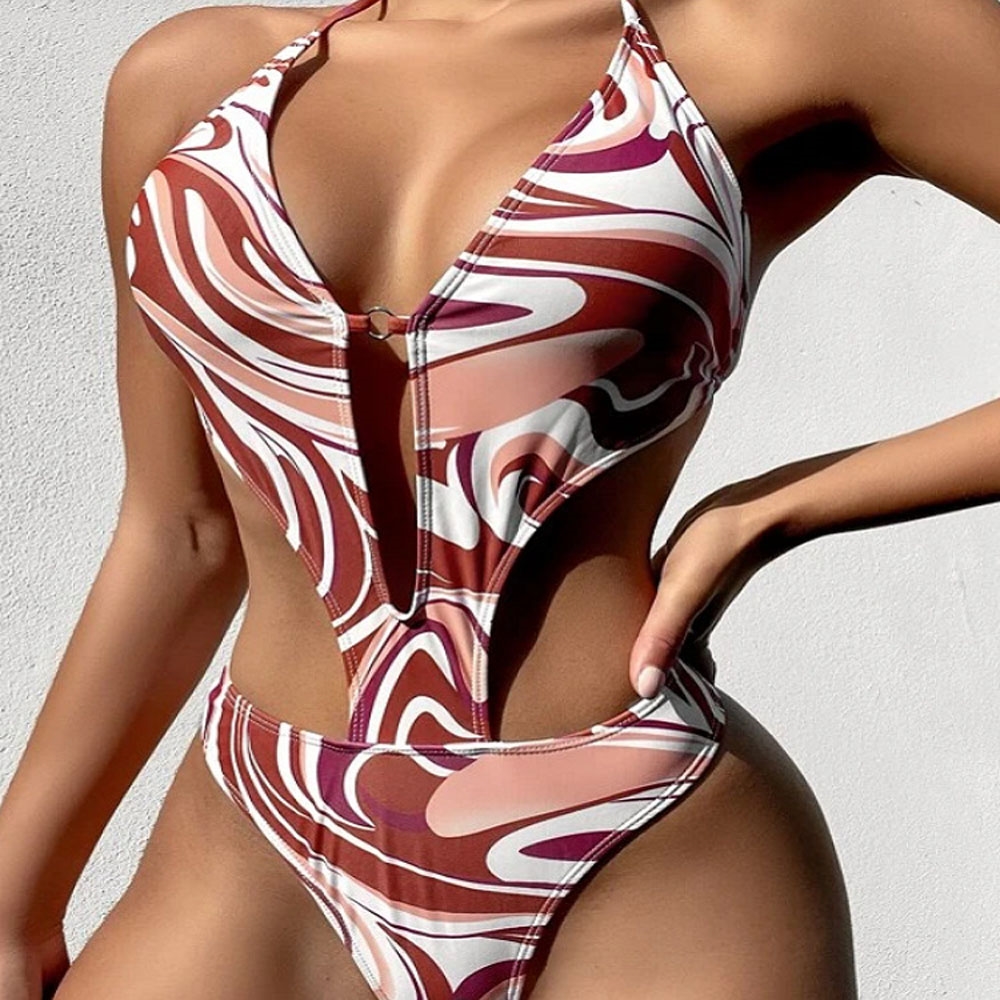 Printing Halterneck Backless Bikini One-Piece Swimsuit