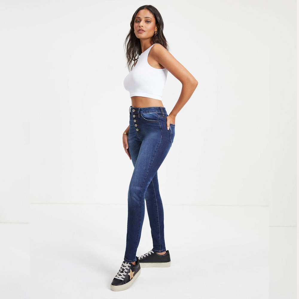 High Waisted Distressed Pencil Denim Pants Jeans
