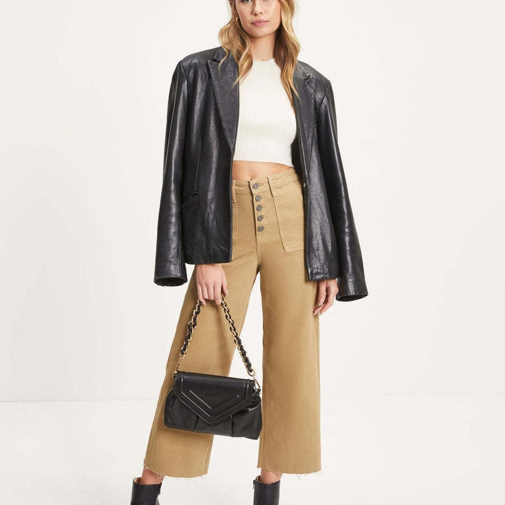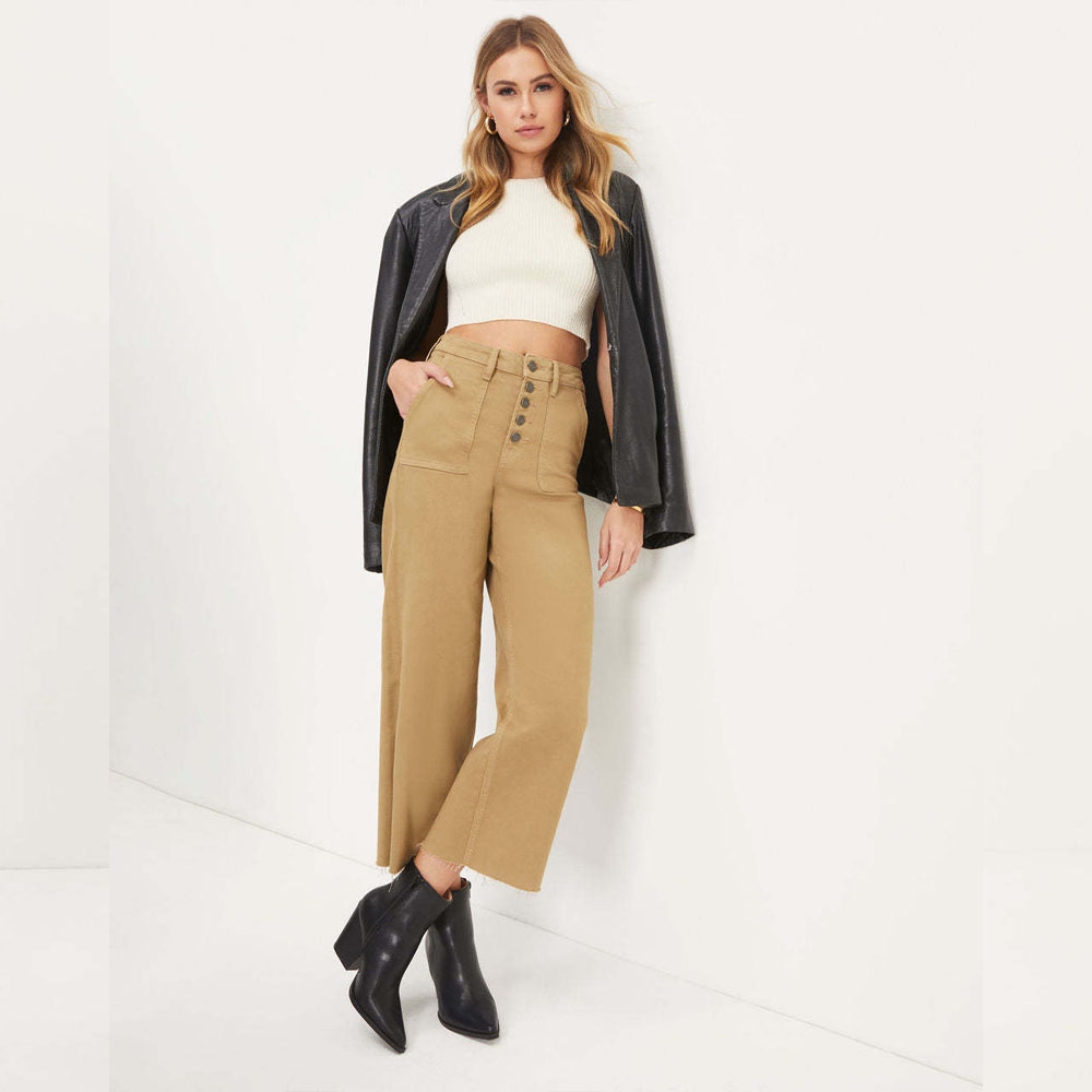 Solid Color High Waisted Straight Wide Leg Denim Pants Jeans