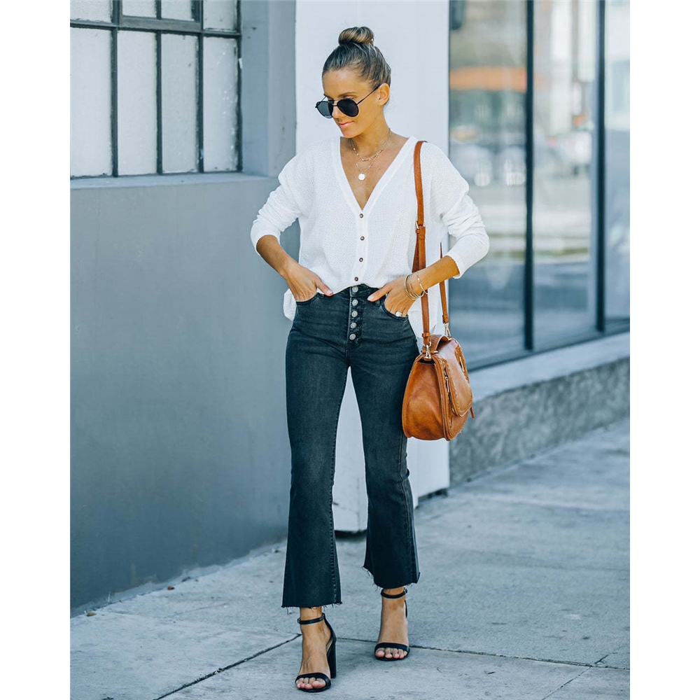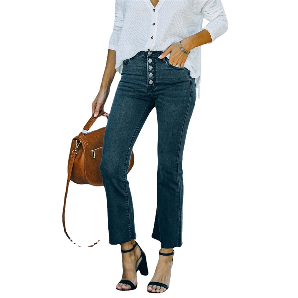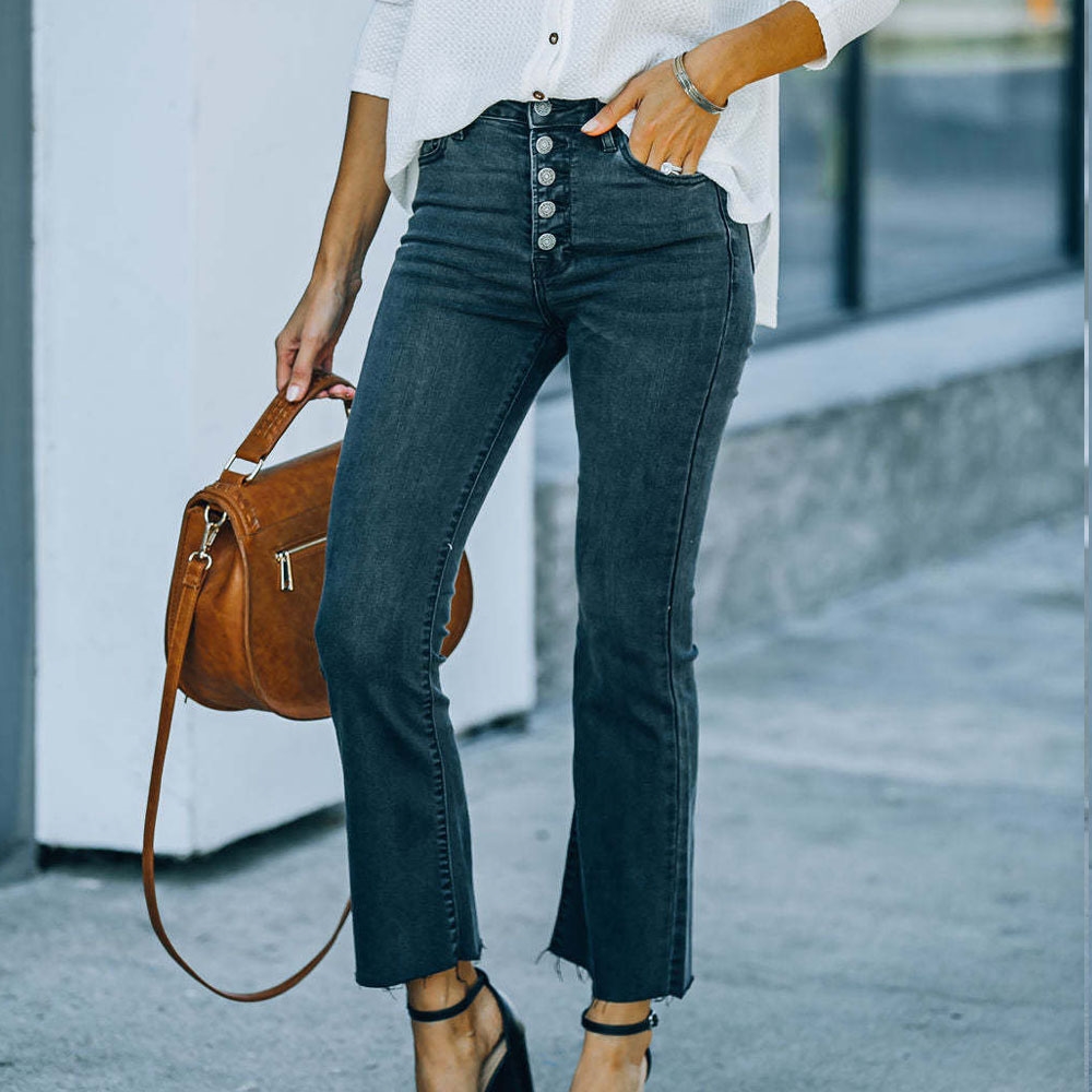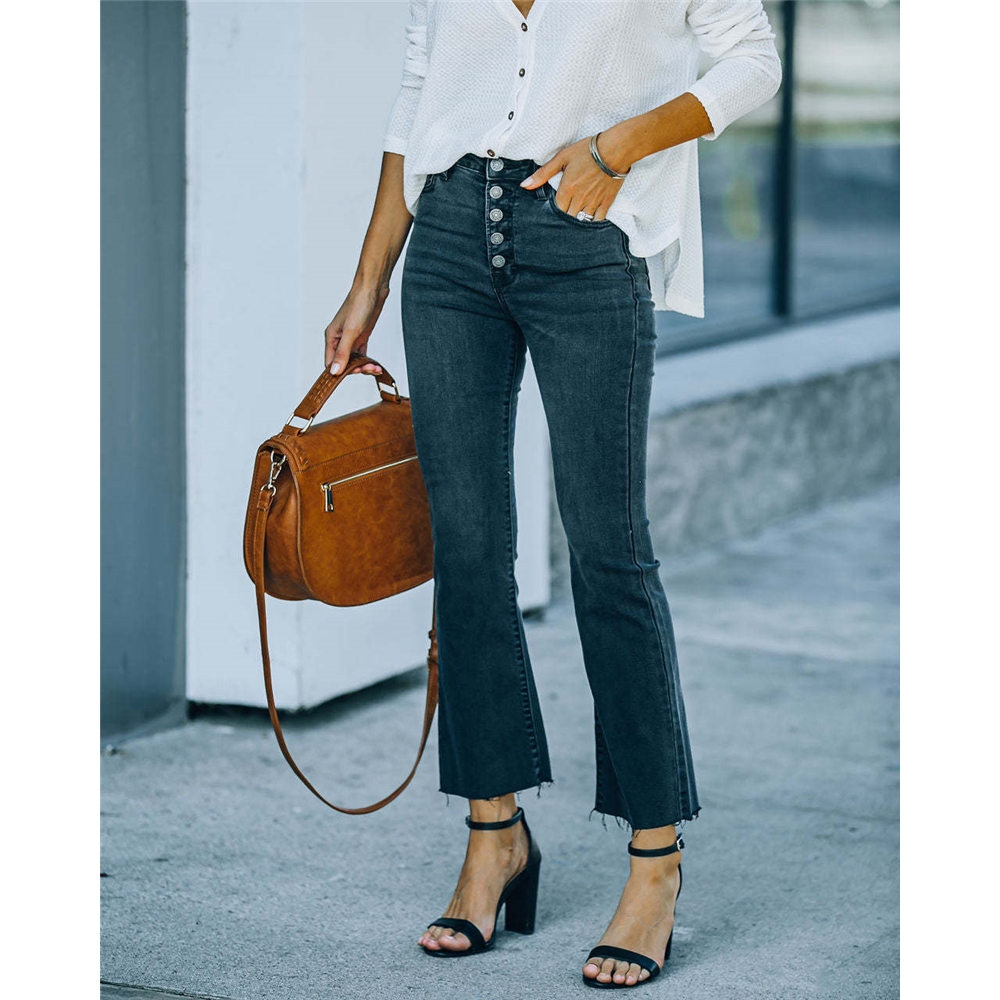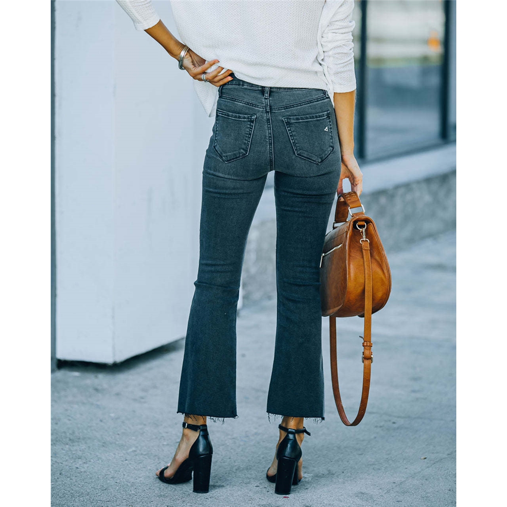 High Waisted Raw Hem Flared Denim Pants Jeans