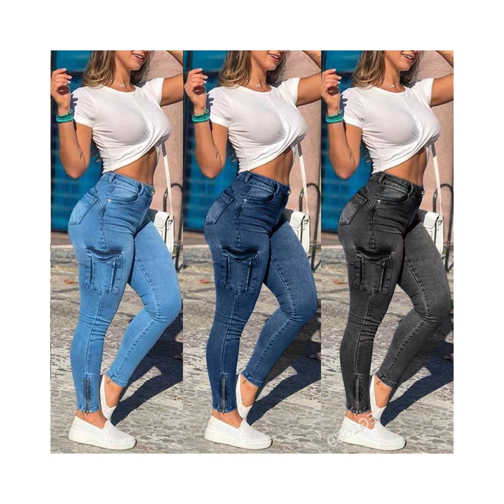 Solid Color Middle Rise Stretchy Skinny Leg Pencil Pants Jeans