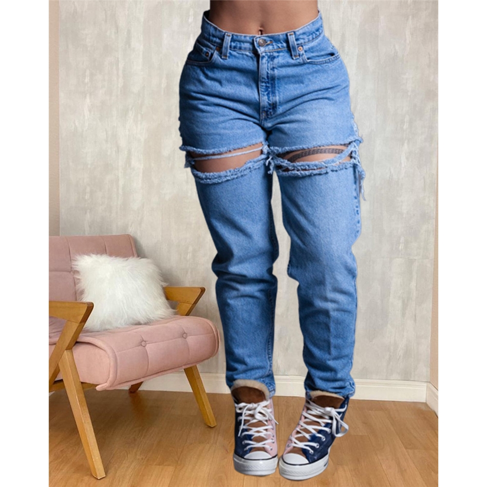 High Waisted Ripped Distressed Casual Denim Pants Jeans
