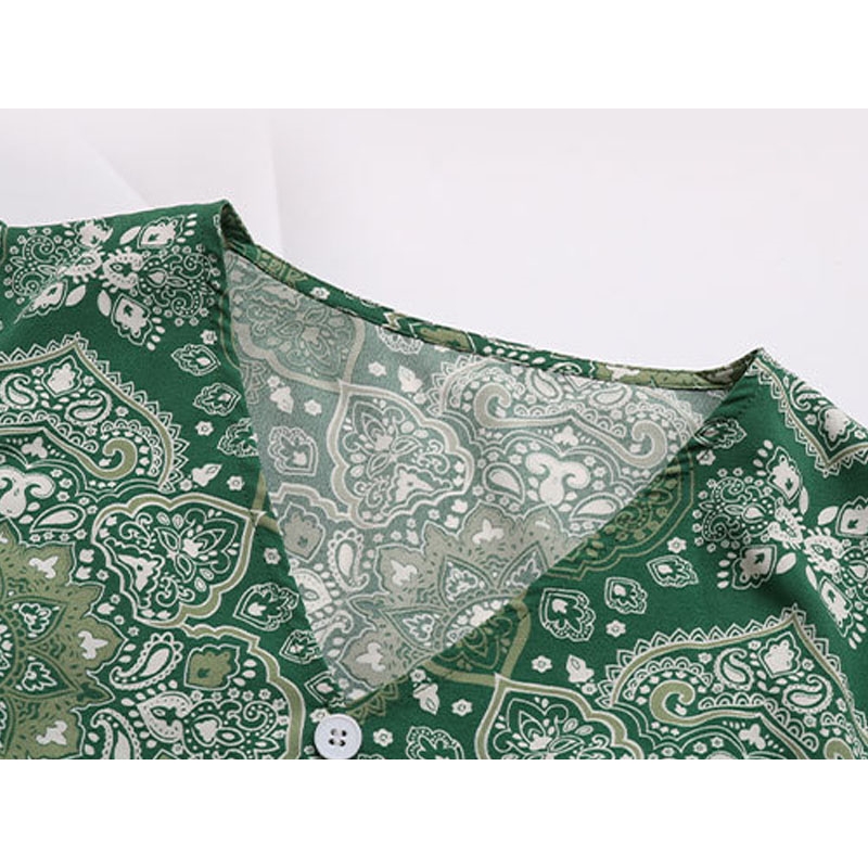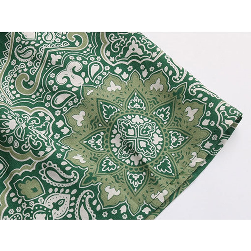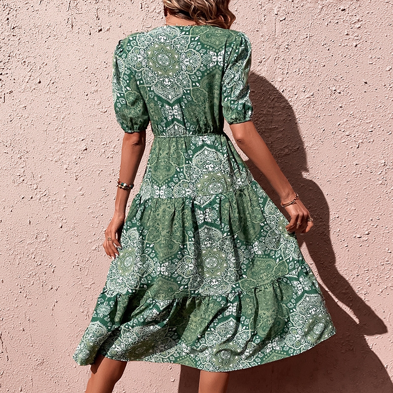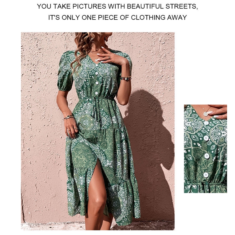 Short Sleeves V-Neck Slit Boho Printing Dress