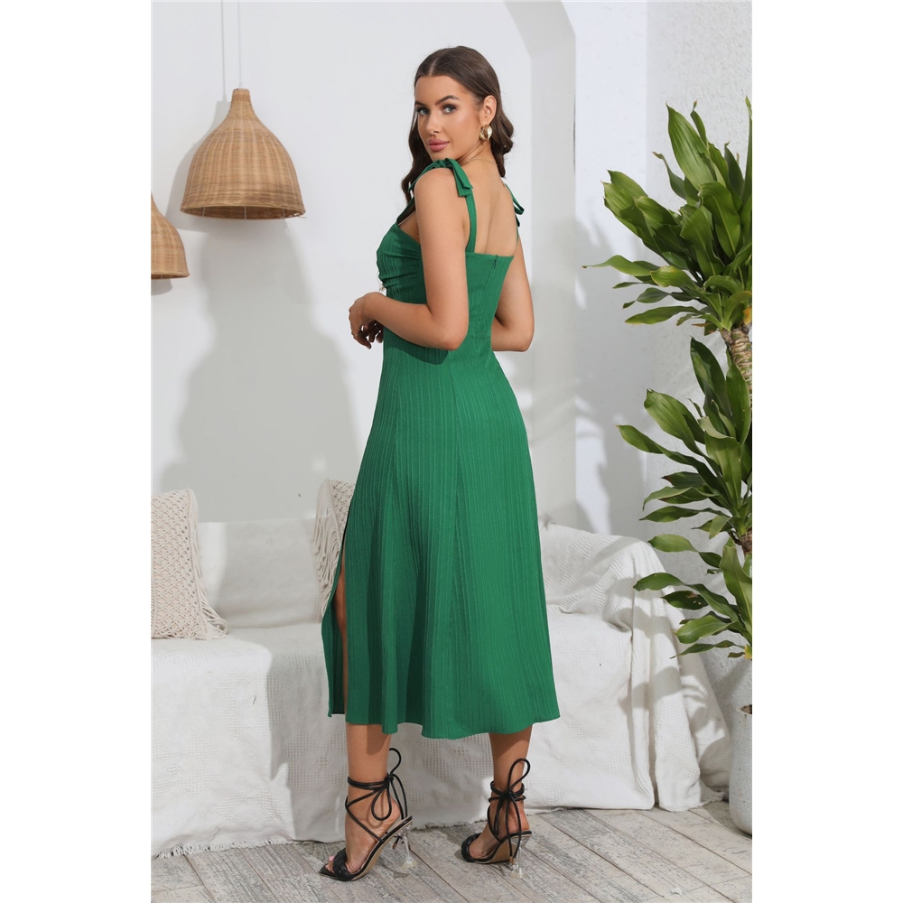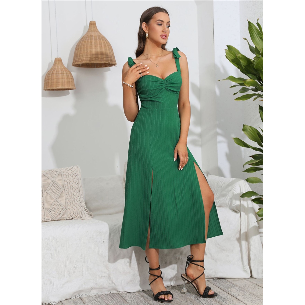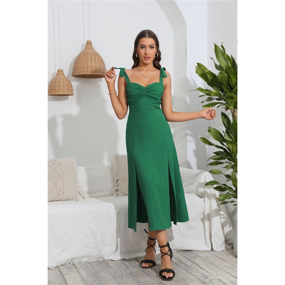 Spaghetti-Neck Split-Side Solid Color Maxi Dress