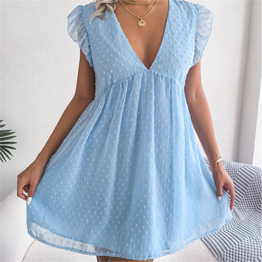Plain Casual V-Neck Wear-Resisting Chiffon Mini Dress
