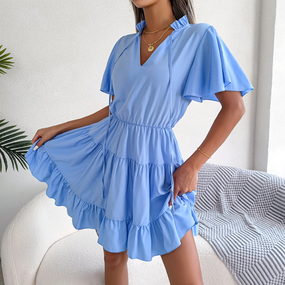 Casual Plain Middle-Waisted A-Line Tied Mini Dress
