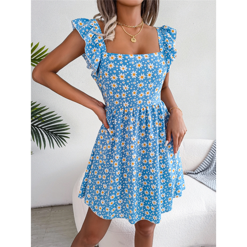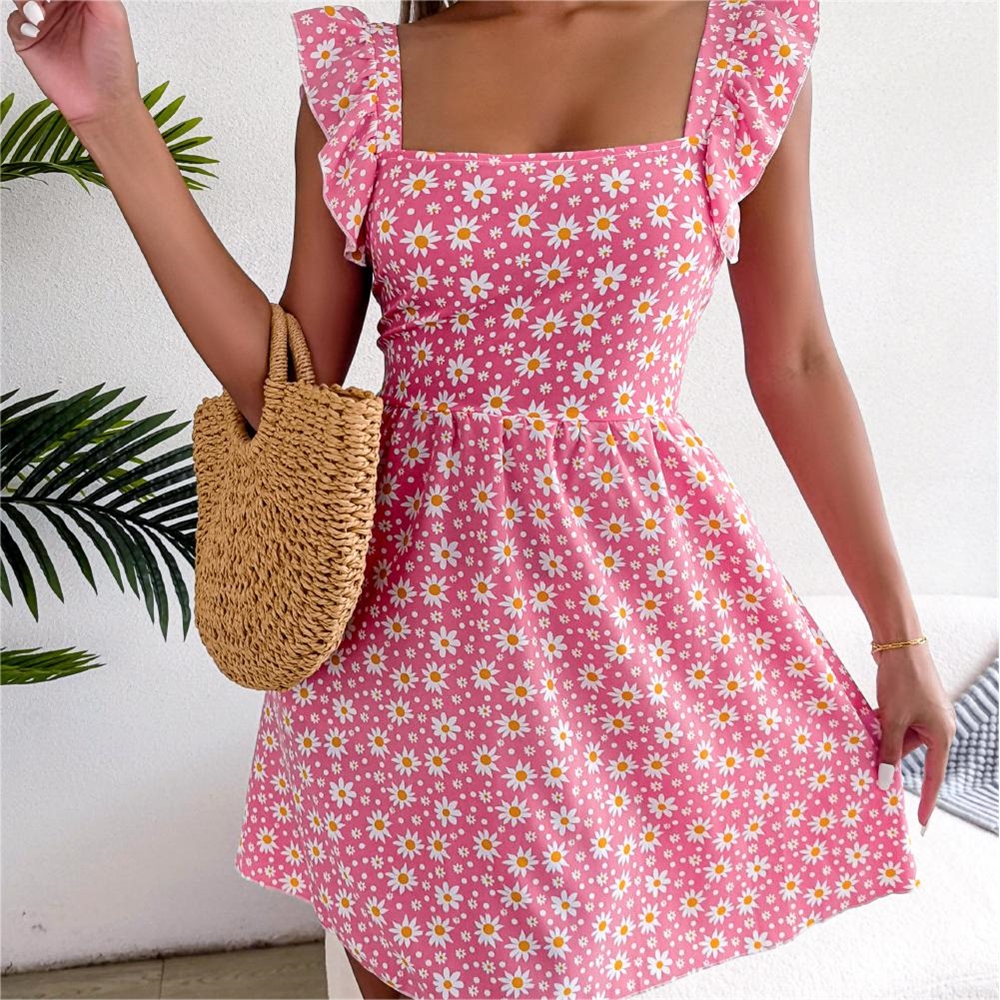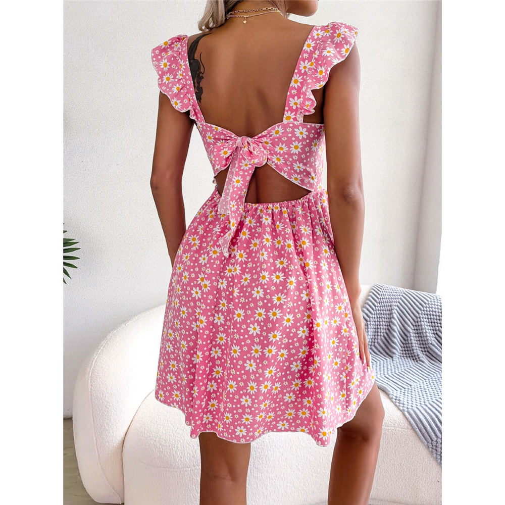 Print Lightweight Sleeveless Backless Bowknot Mini Dress