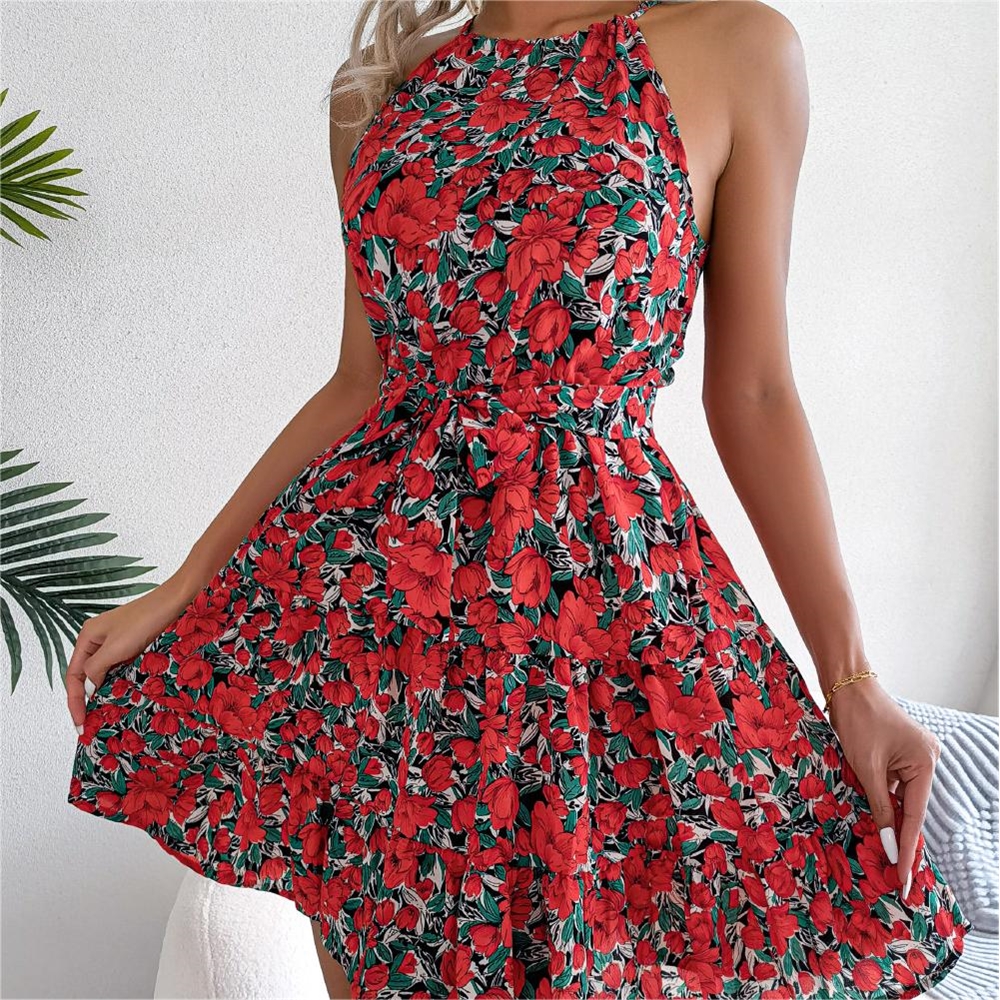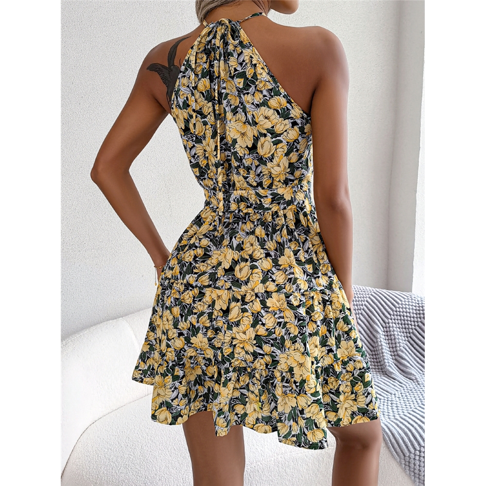 Print Sleeveless Casual Halter Neck Soft Mini Dress