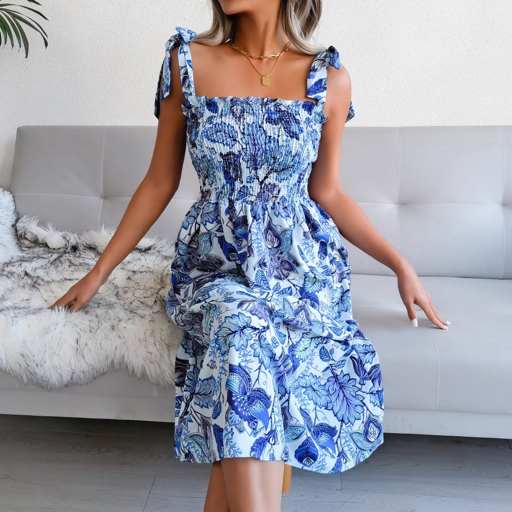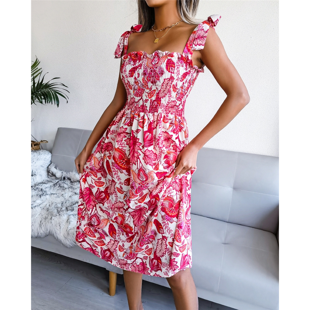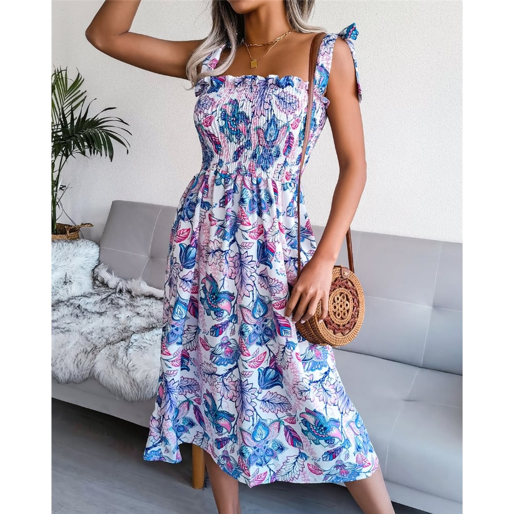 Print Sleeveless Square Neck Wear-Reesisting Maxi Dress