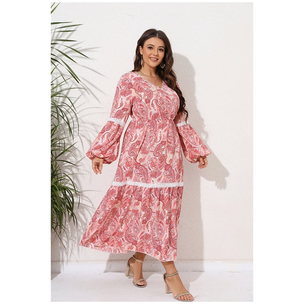 Loose Puff Sleeve Lacy Paneled Soft Maxi Dress