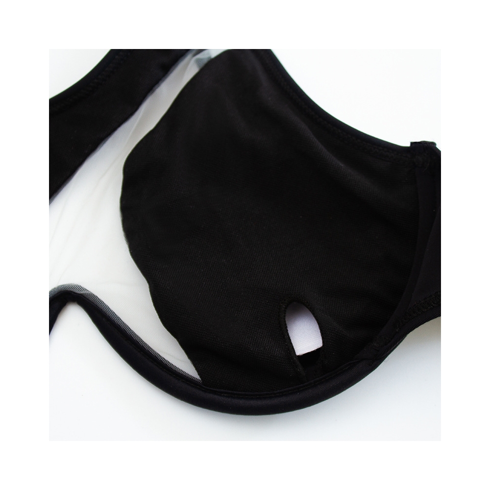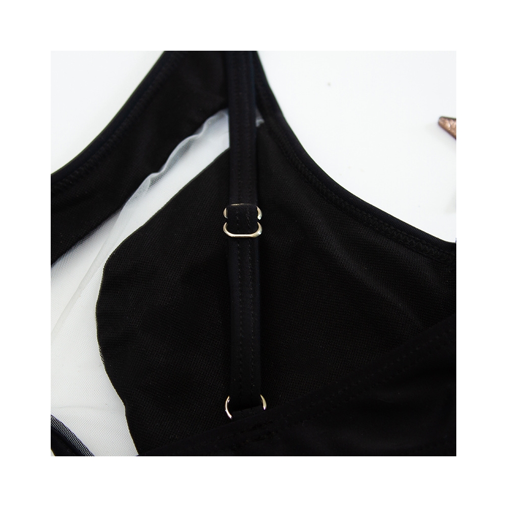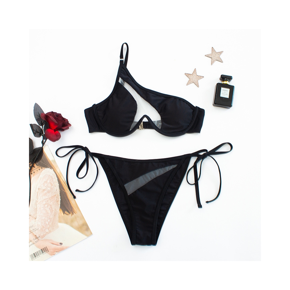 One-Shoulder Mesh Patchwork Underwired Chest Pad Bra And Briefs Two Pieces Bikini Set