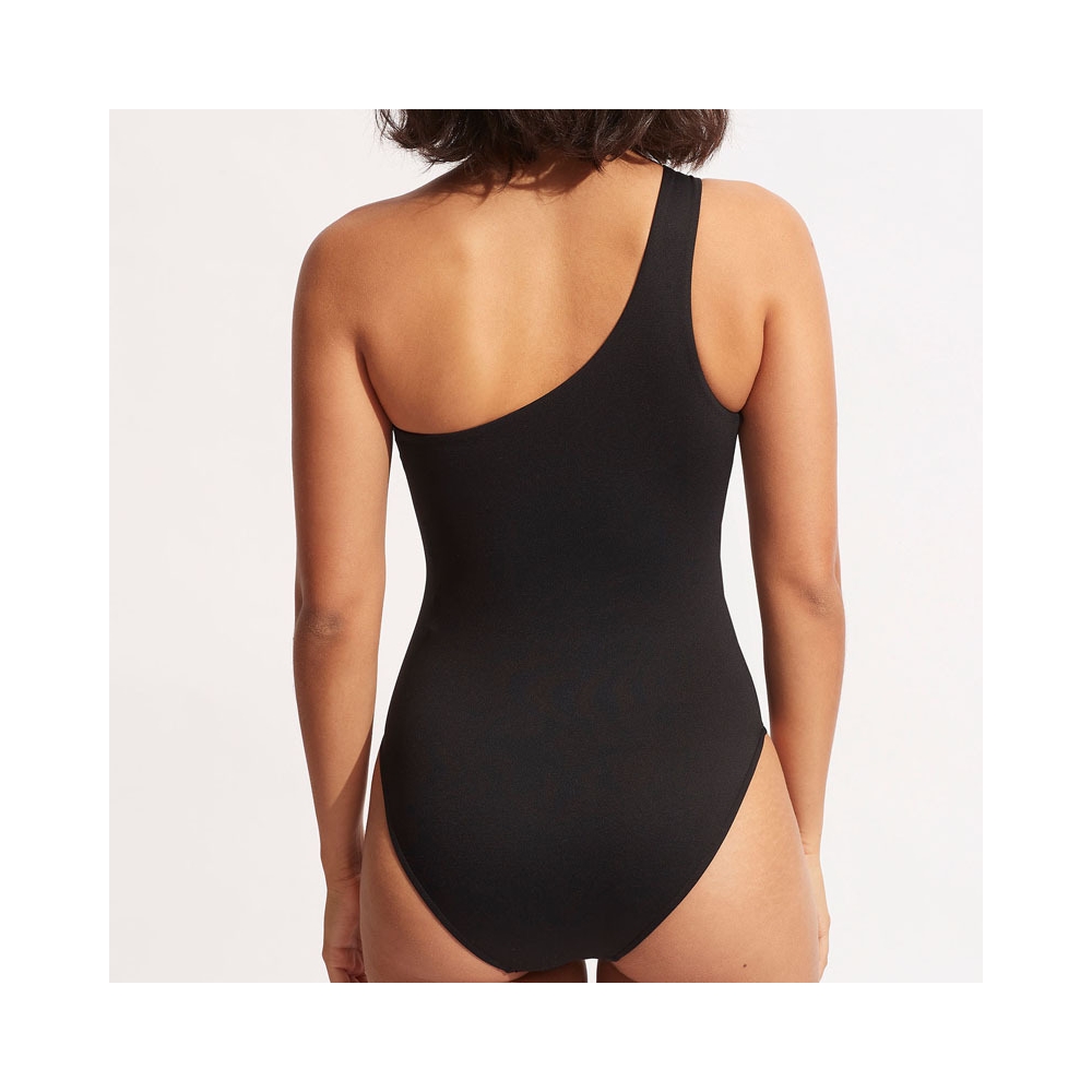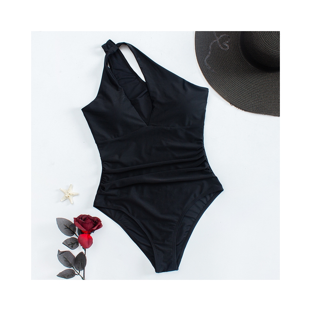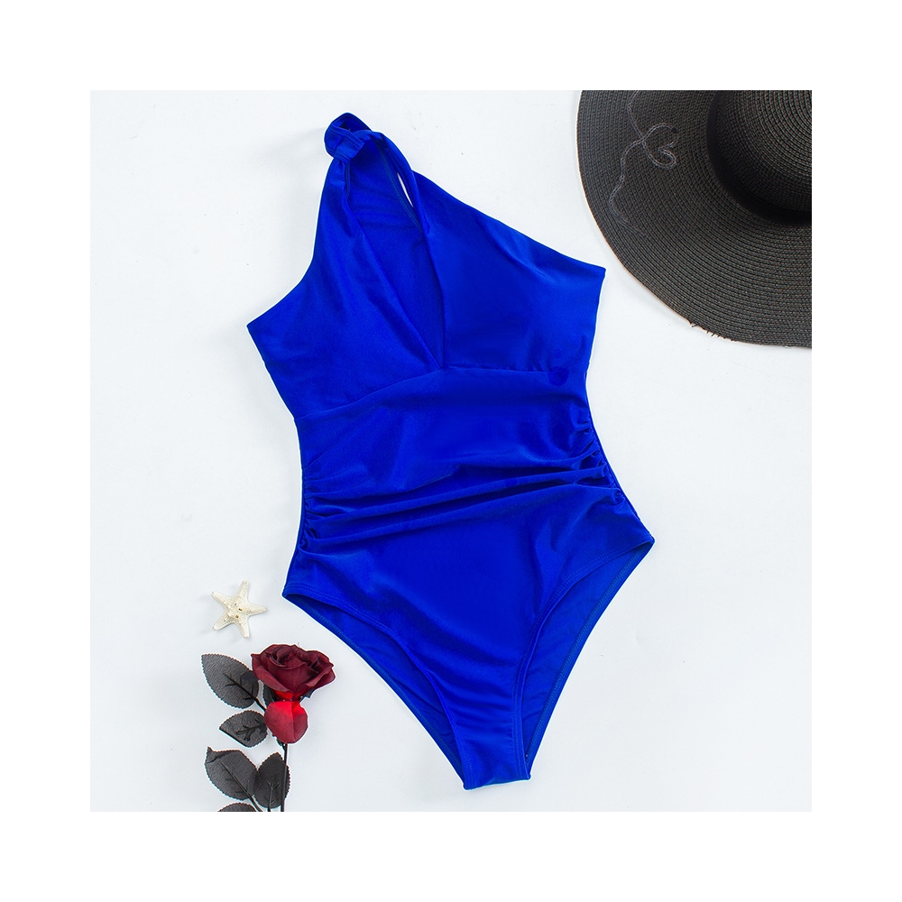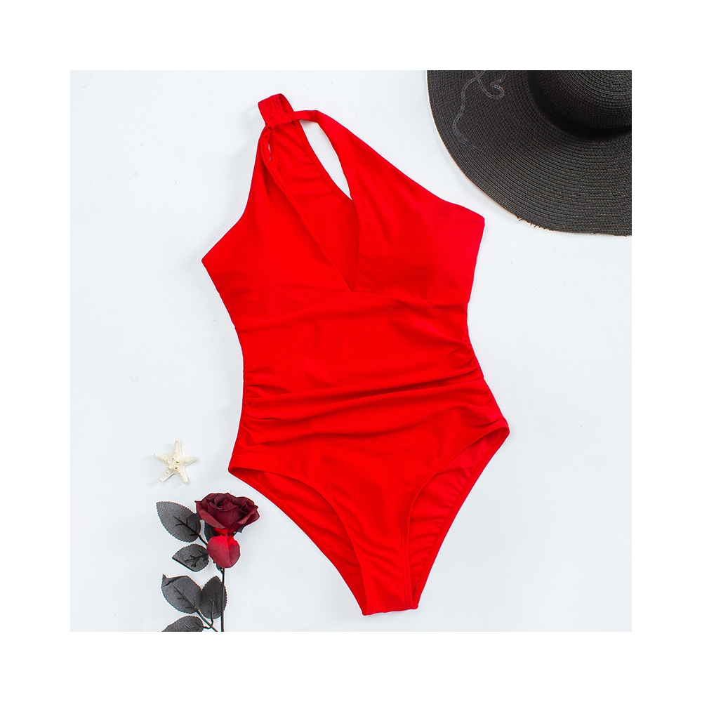 Solid Color One-Shoulder Hollow Chest Pad One Piece Bikini Swimwear