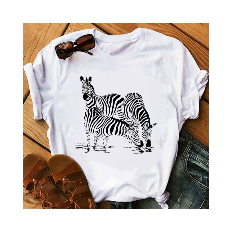 Zebra Cartoon Printed Summer T-Shirt
