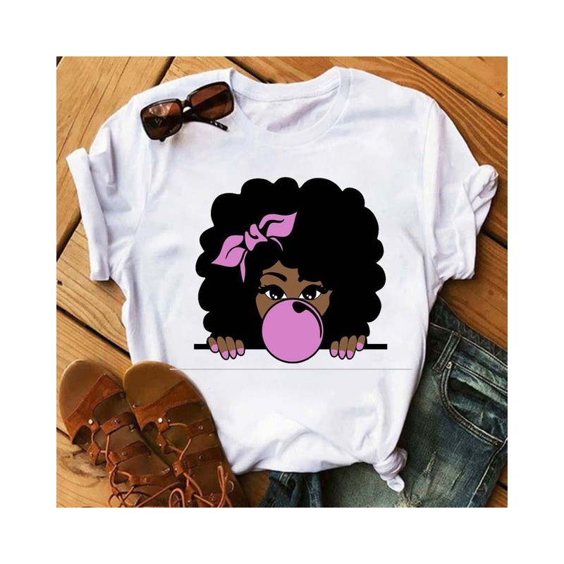 Round Neck Girl Cartoon Printed T-Shirt