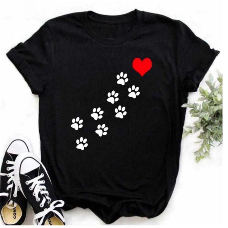 Loose Round Neck Puppy Paws Cute Cartoon T-Shirt