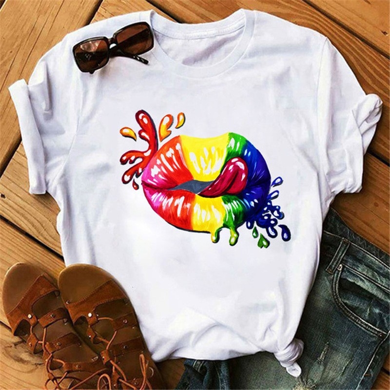 Lips Cartoon Simple Printed T-Shirt