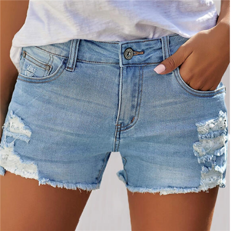 5. Ripped: The stylishly ripped design adds a fresh and modern look to the shorts.