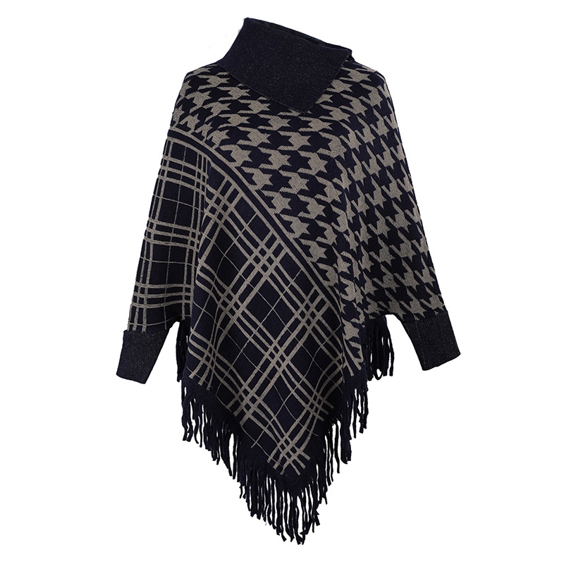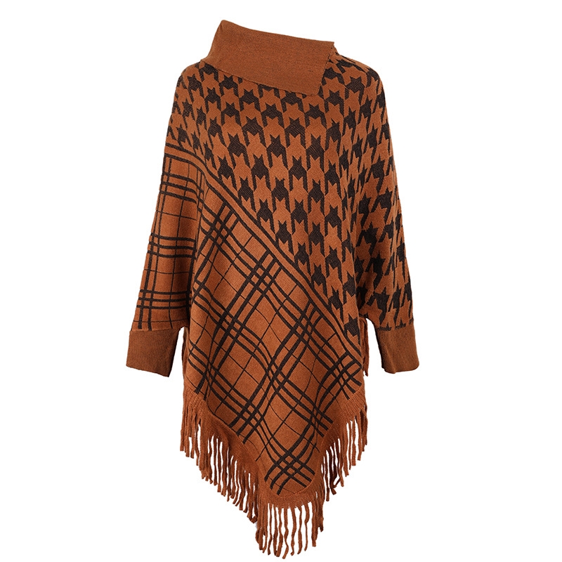 Half-Open Collar Knit Sweater Cloak With Tassel Bottom Coat