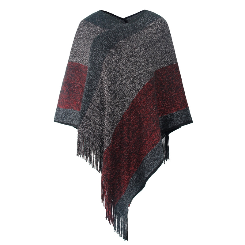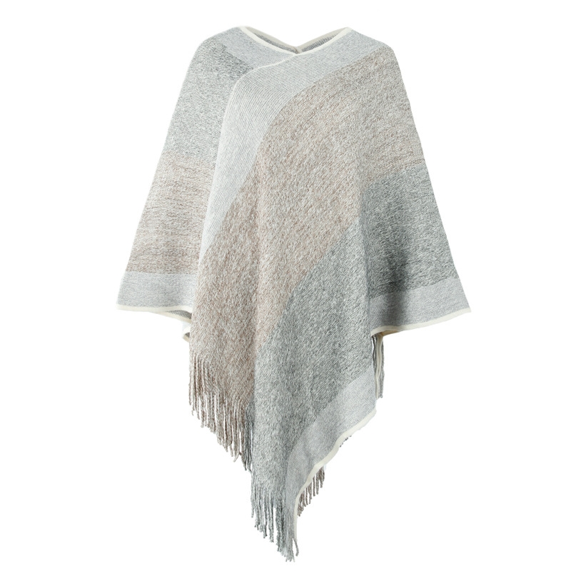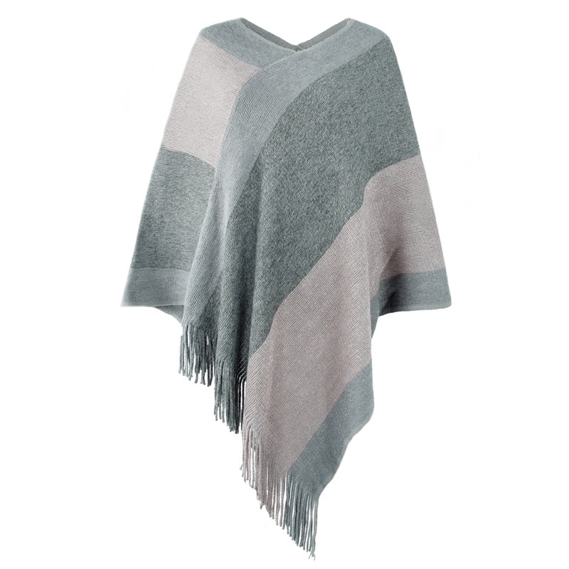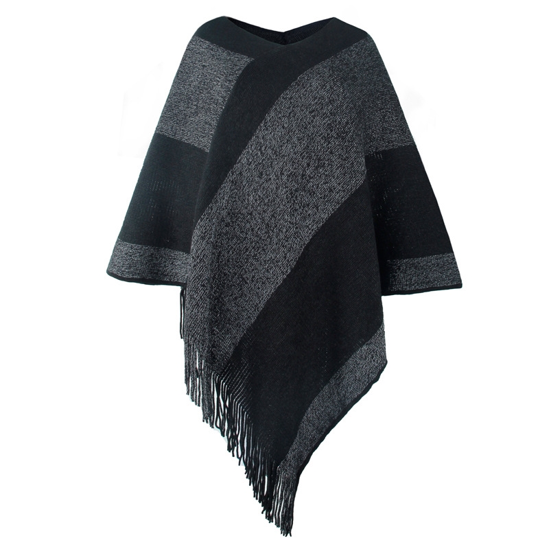 Imitation Cashmere Striped Tassel Knitted Shawl With Contrasting Cape
